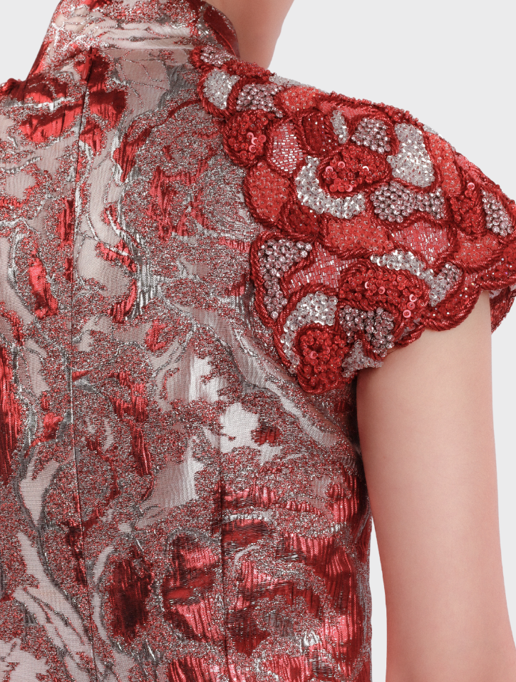 Fiziwoo Luxe Limited Edition Guipure Lace Short Kurung in Peach