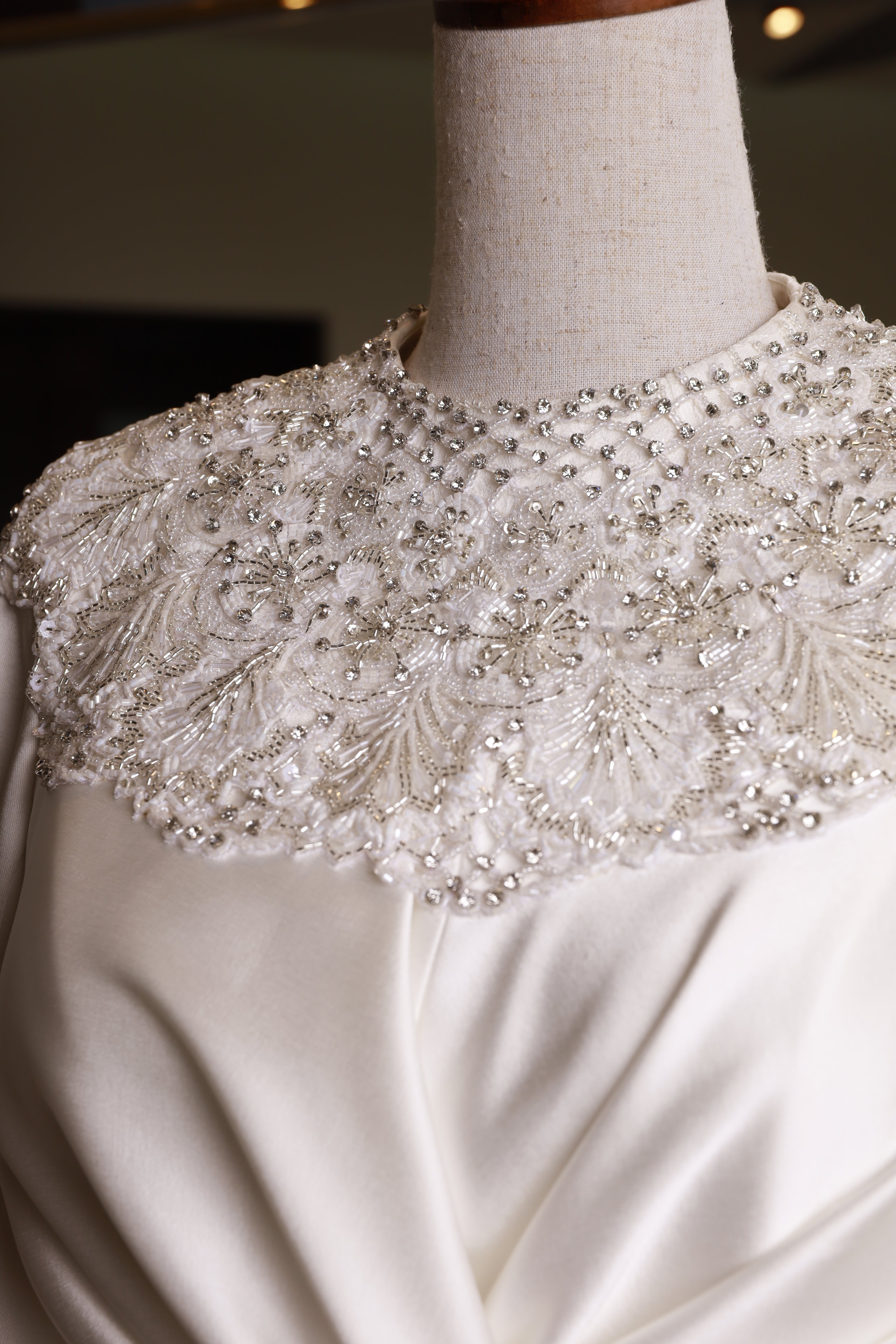 Custom-made FIZIWOO accessories are meant to finish and enhance your bridal look. From delicate jewelry and sculptural hairpieces to elegant belts and couture gloves, every piece is carefully designed to complement your gown and provide subtle sophistication to the overall composition.