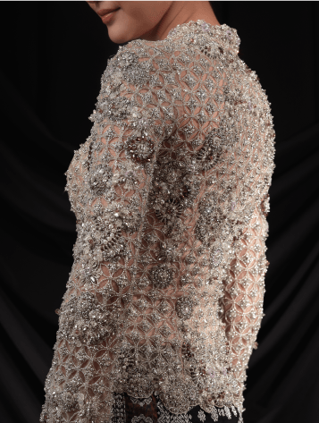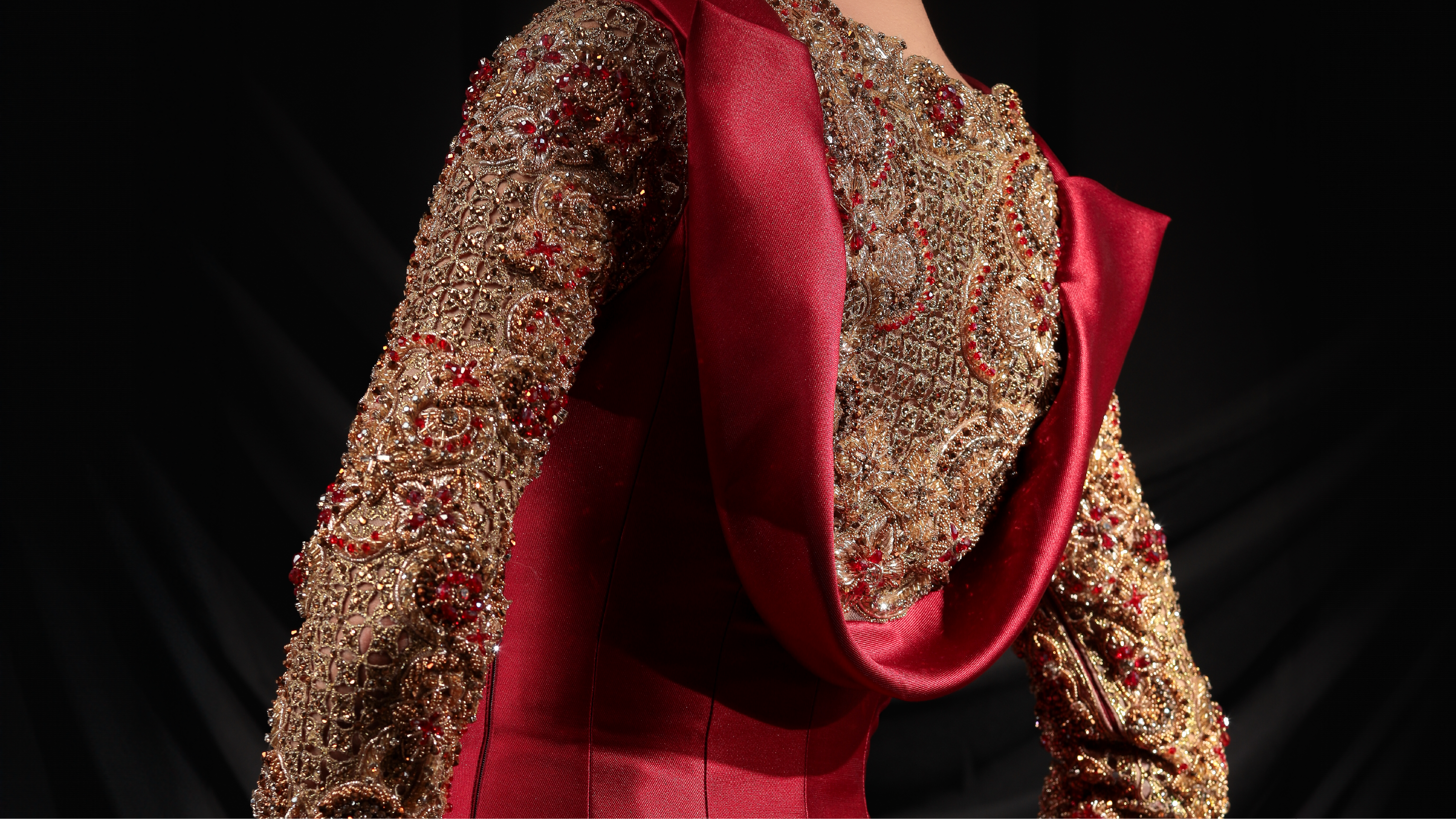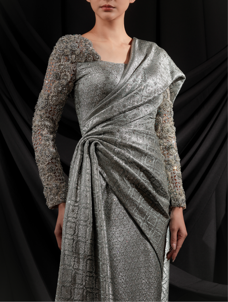 More than an exercise in form, Crowned in Thread is a meditation on heritage. It reflects the dialogue between preservation and evolution, where the techniques of master weavers meet the language of modern couture. Through pleating, controlled volume, and intricate embellishment, each garment transforms traditional attire into a living expression of cultural artistry