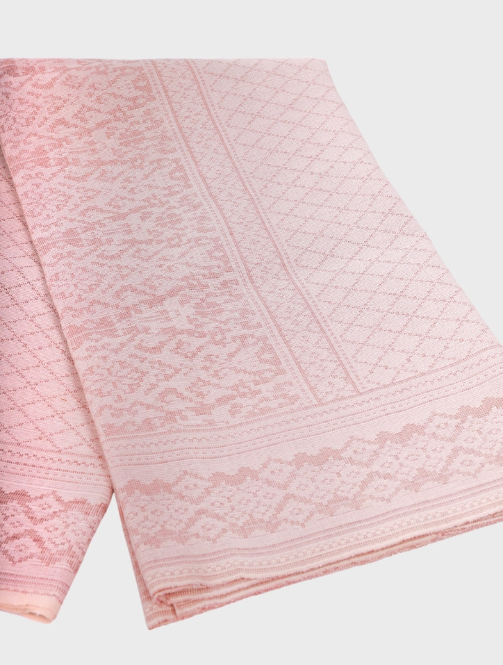 Abdullah Sampin design blends tradition and luxury with traditional Songket intricately woven with pink threads for a rich, textured finish. Tailored for elegance, it features a traditional French seam, ensuring a seamless, polished look inside and out embodies heritage craftsmanship with modern refinement.