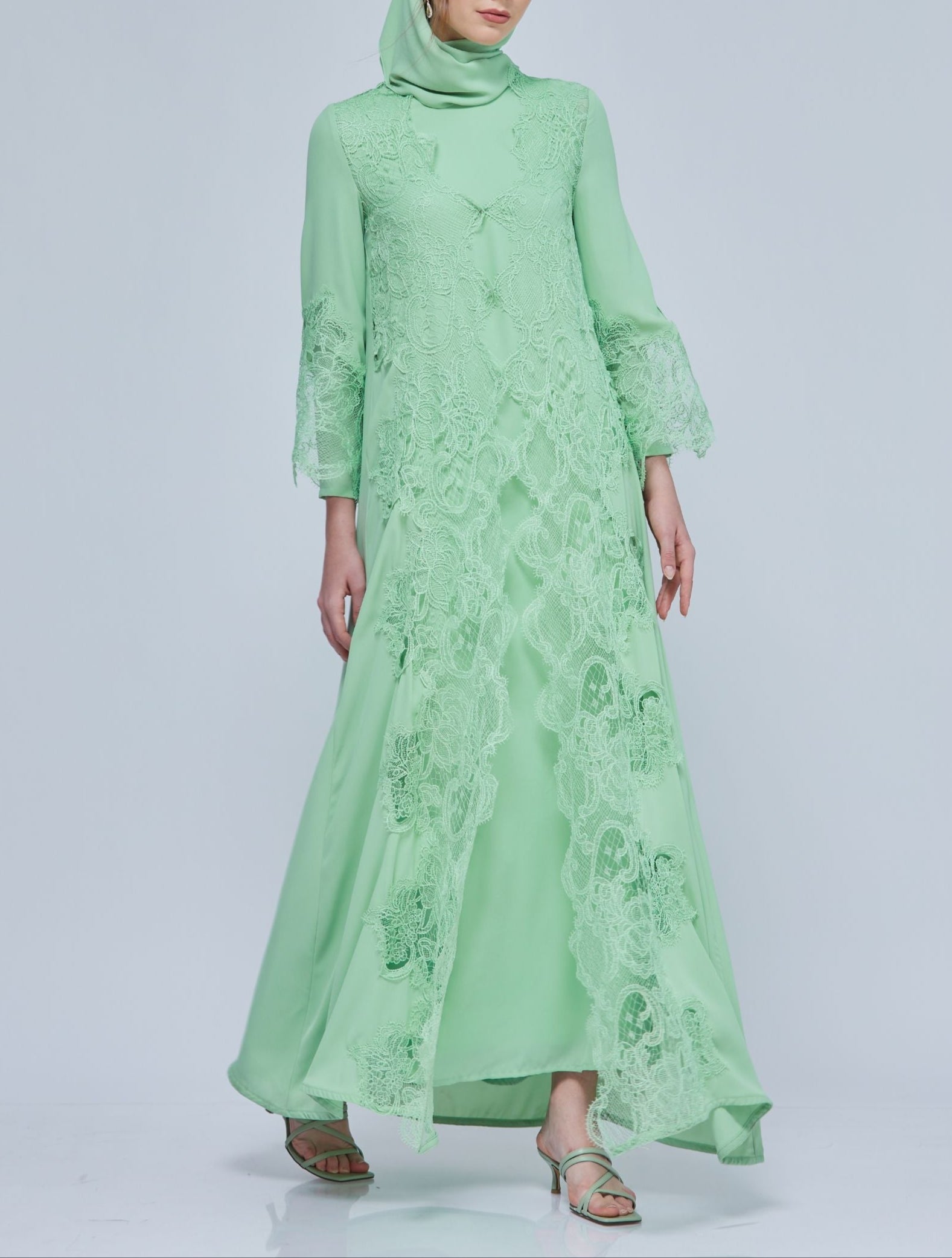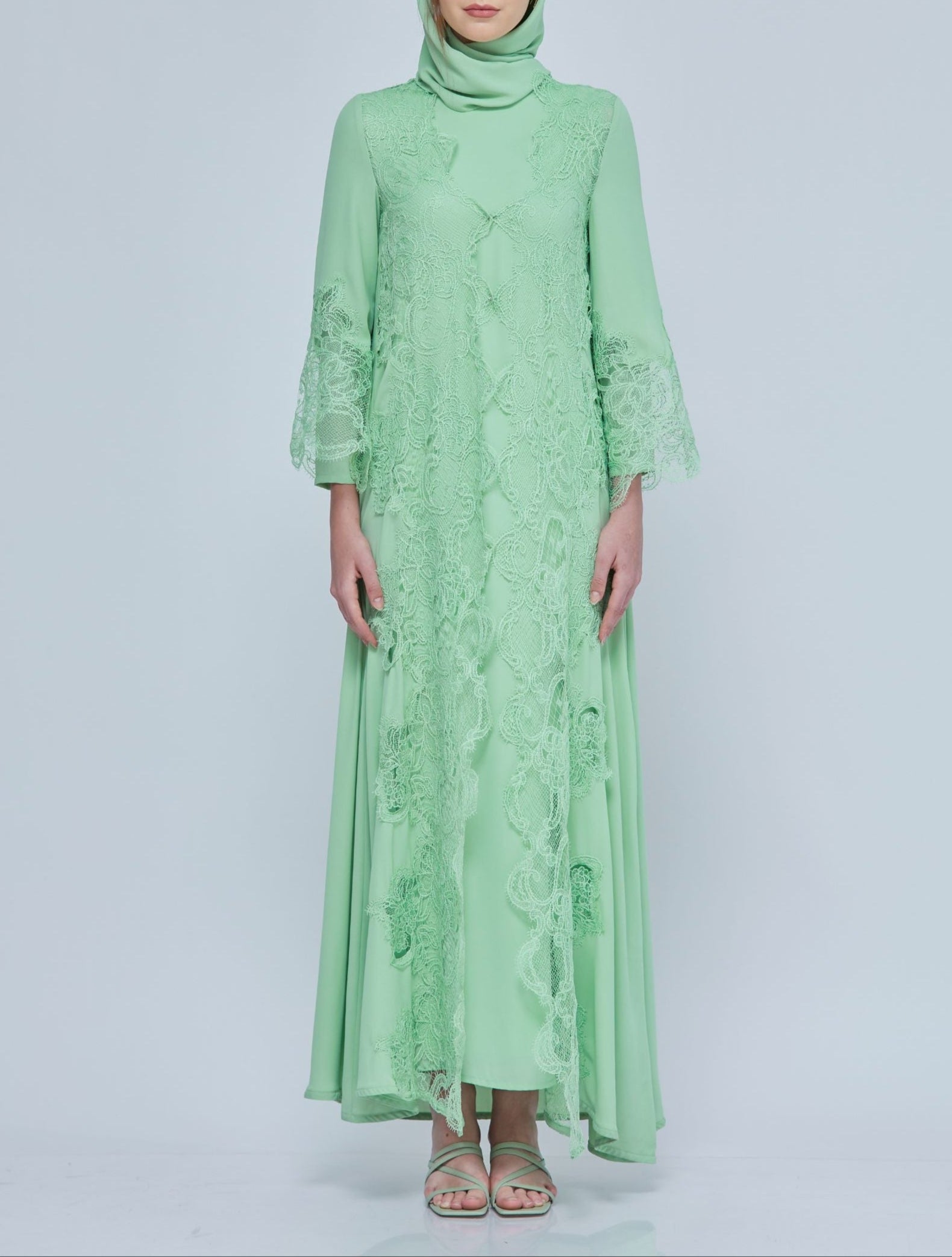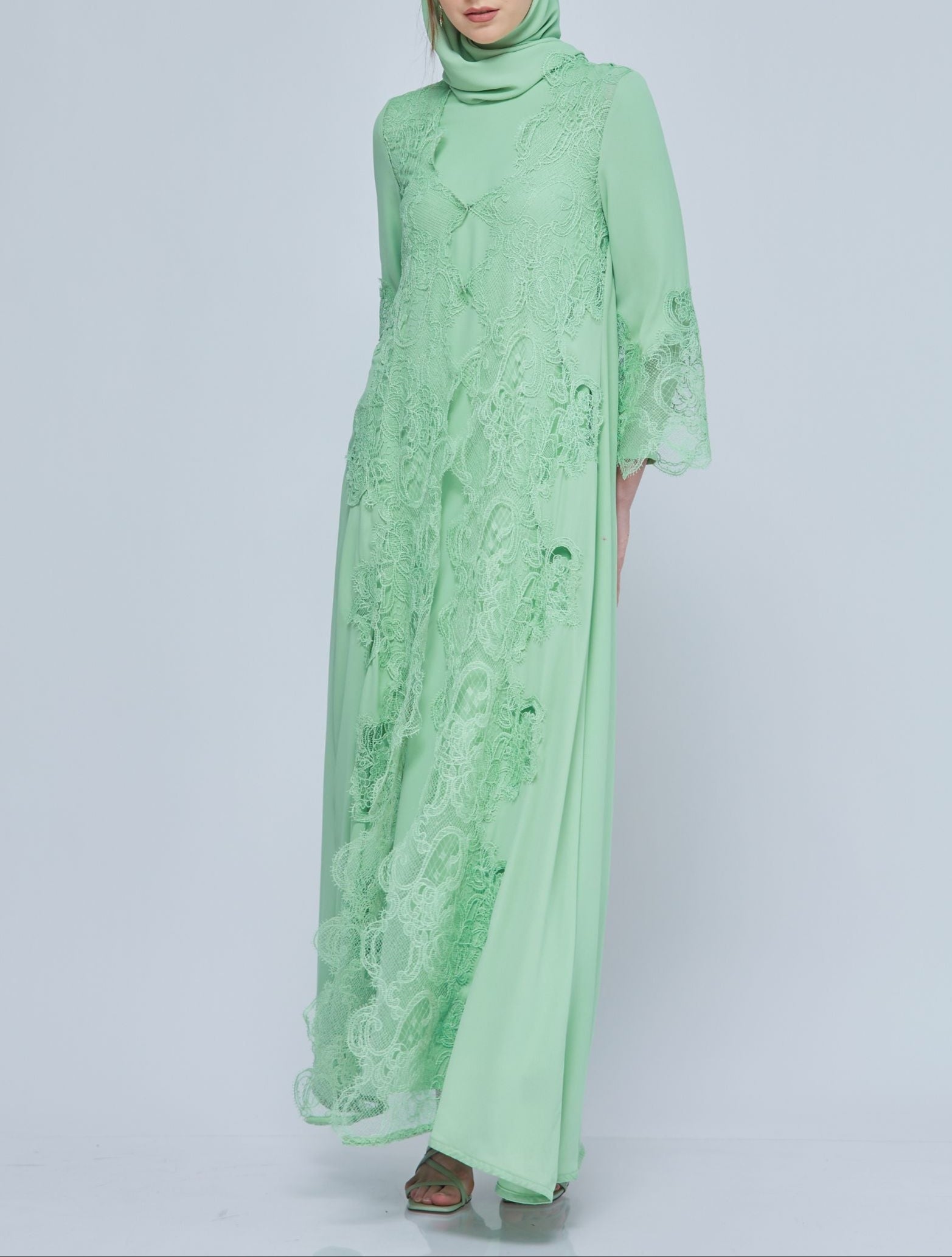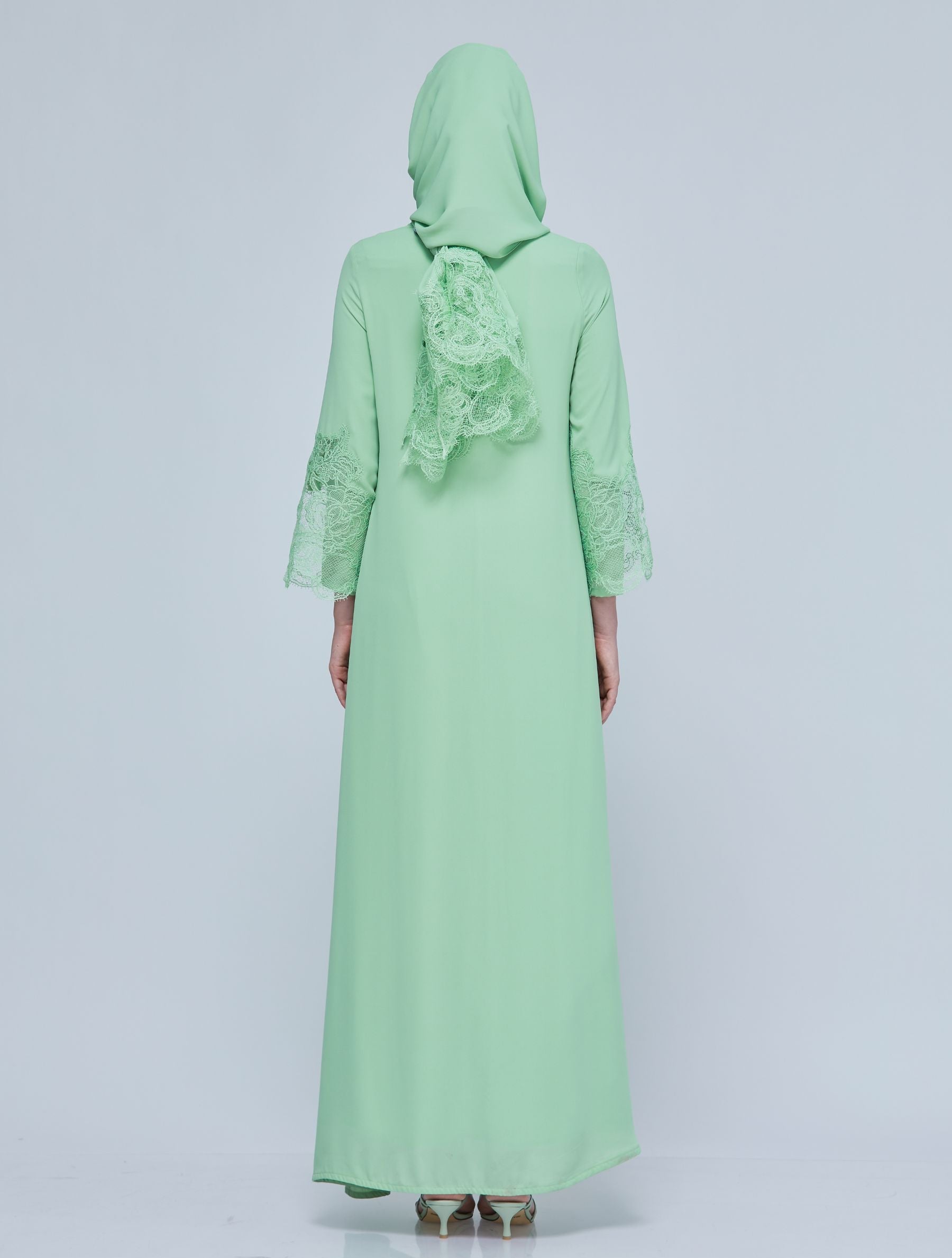 Sophisticated Fiziwoo Abaya is designed with the special intention of providing the ideal balance of modesty and elegance. Every Abayas is exclusively produced with highest standard. This exquisite abaya is made from dense chiffon and features quality french lace detailing. Guaranteeing maximum comfort yet retaining its breathable characteristic. It comes with a matching shawl, and is perfect for special occasions or daily use. As an outcome, the choice of this fabric allows you to feel more comfortable and elegant without being anxious about thin clothes and apparent body structure. Fiziwoo's Abaya collection may be styled in two ways: without or with an outer abaya.