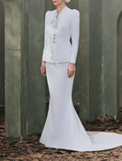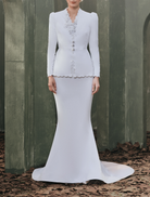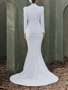 The Alexandra Dress brings a refined presence with clean, minimalist lines contrasted by thoughtful detailing. Crafted from premium fabrics, it balances understated sophistication with bold design elements for a timeless look. Subtle embellishments highlight its moderntailoring, creating an elegant statement in classic white.