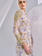 The Anggun Lilac Purple Top features a rich beading on the right sleeve, which draws attention to the asymmetrical one-shoulder neckline. It is fully lined with silk satin and has a back zipper and fastening opening, providing comfort and style.