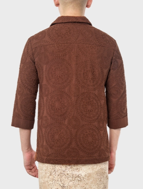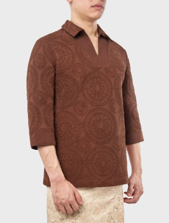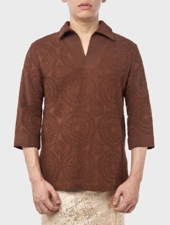 Aniq in Chocolate Brown is crafted from premium fabric and lined with smooth silk satin, offering comfort and a polished finish. Featuring a sleek Johnny collar, 3/4 folded-hem sleeves, hidden side pockets, and side slits, it blends traditional charm with modern sophistication.