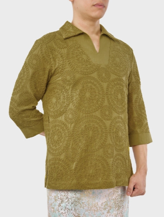 Aniq in Olive Green is crafted from premium fabric and lined with smooth silk satin, offering comfort and a polished finish. Featuring a sleek Johnny collar, 3/4 folded-hem sleeves, hidden side pockets, and side slits, it blends traditional charm with modern sophistication.