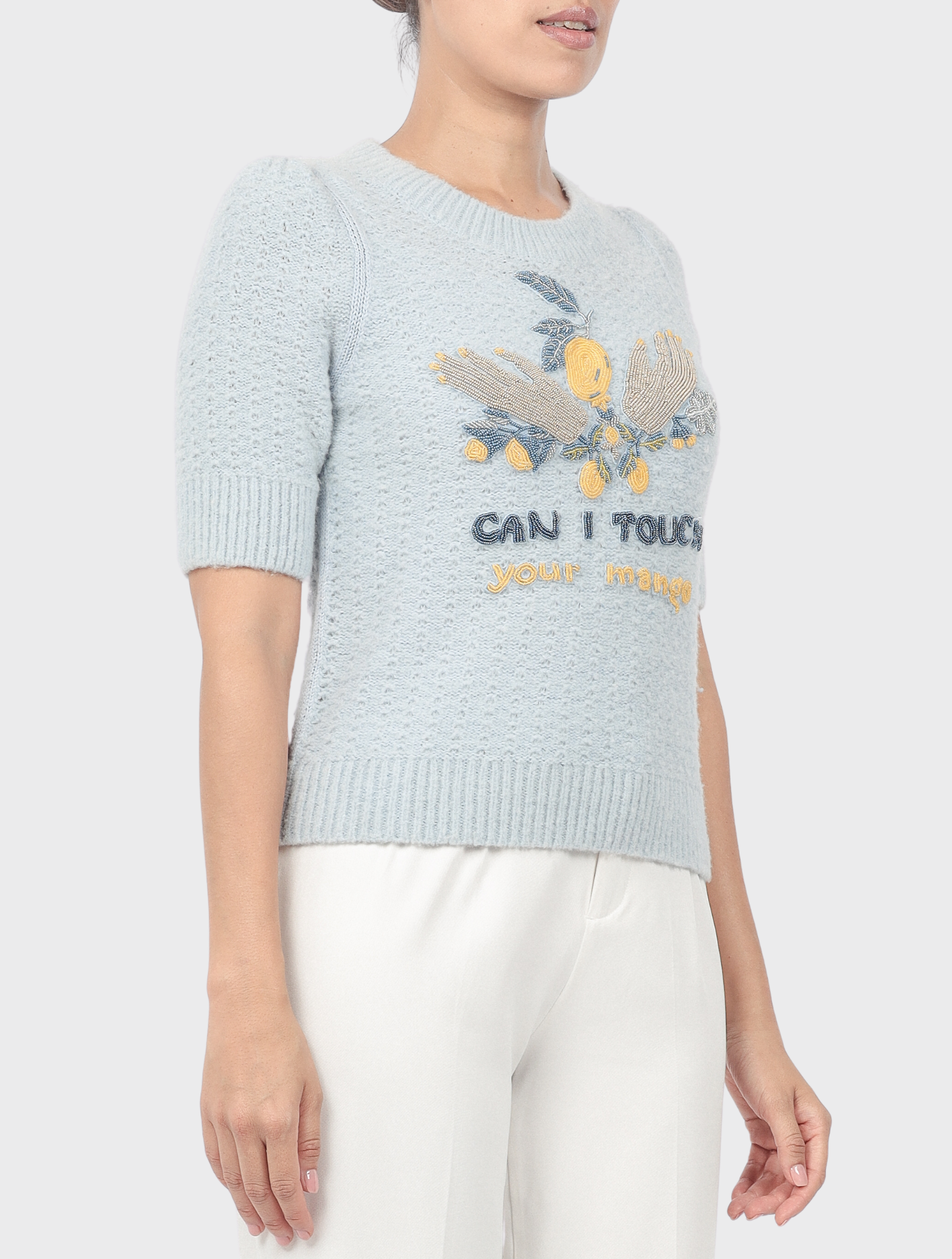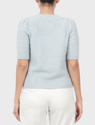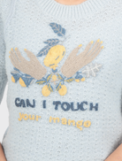 This sweater, which is made from high-quality cotton crochet knit, has a structured yet breathable texture that exudes carefree elegance. Comfort is improved by the open-knit construction, and the boxy shape and ¾ sleeves give it a carefree, contemporary drape. Its delicate baby blue finish creates a sophisticated backdrop for the handcrafted tambour beading that is distinctively "FIZIWOO Harumanis."