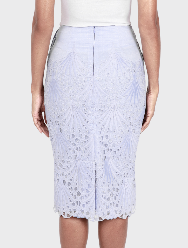 Deauville in Indigo Blue is a classic pencil cut knee-length skirt blends elegance with functionality, featuring a sleek silhouette complemented by a subtle back slit for ease of movement. Designed with convenient side pockets, it offers both style and practicality. A secure zip fastening ensures a seamless fit, making it a versatile staple for any wardrobe.