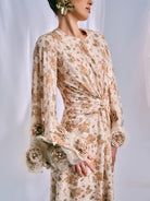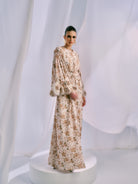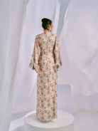 The Ayu Ivory Mustard is designed with a classic round neckline and features sophisticated knot draping at the waist. Its wide bell sleeves are embellished with intricate 3D floral beadwork, enhancing the elegant A-line silhouette. The dress fastens securely with a back zipper and opening, and is fully lined with smooth silk satin for a luxurious and comfortable wear.