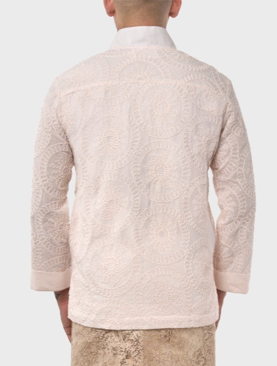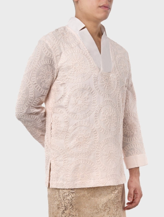 Ben in Seashell White is crafted from premium fabric and lined with smooth silk satin, offering comfort and a refined finish. Featuring a masculine V-neck collar, long folded-hem sleeves, hidden side pockets, and side slits, it blends timeless sophistication with modern versatility.