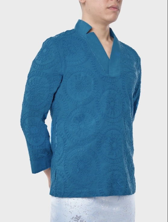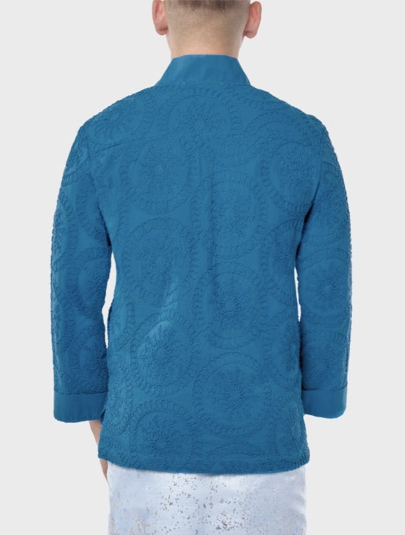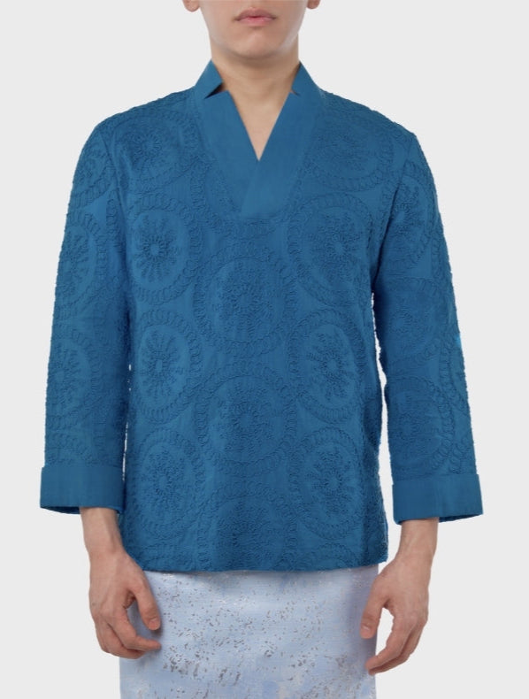 Ben in Dark Teal Blue is crafted from premium fabric and lined with smooth silk satin, offering comfort and a refined finish. Featuring a masculine V-neck collar, long folded-hem sleeves, hidden side pockets, and side slits, it blends timeless sophistication with modern versatility.