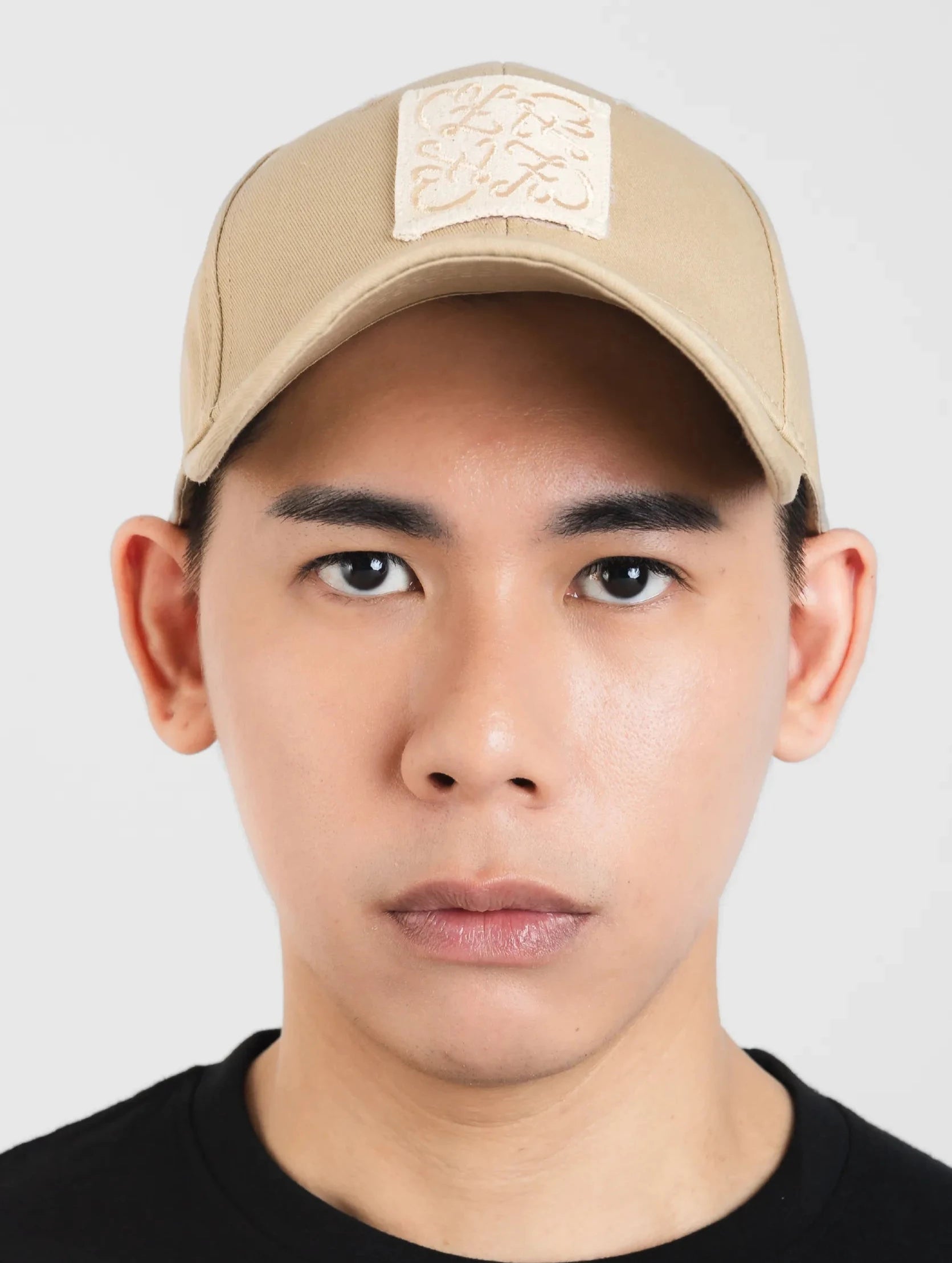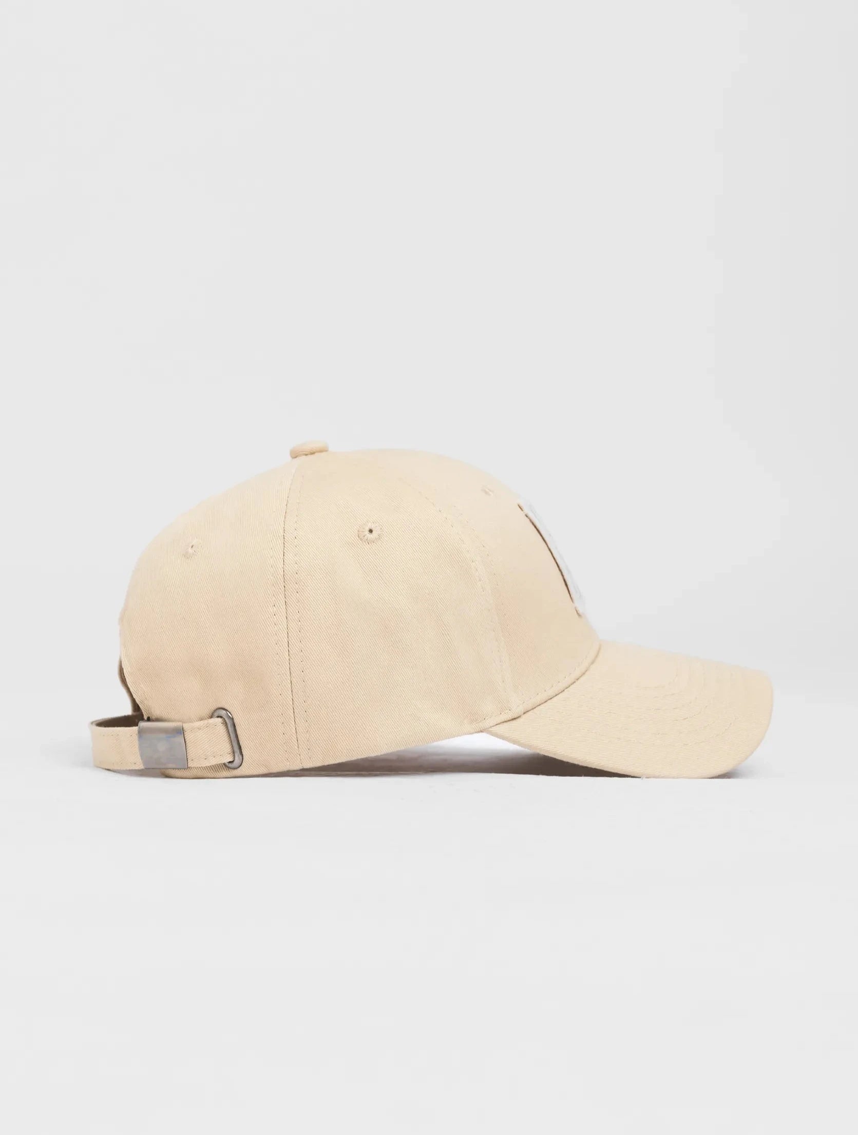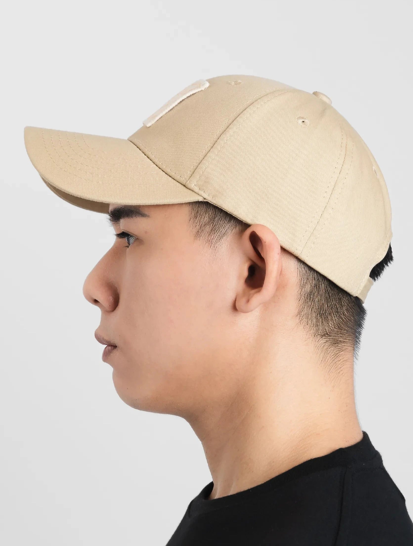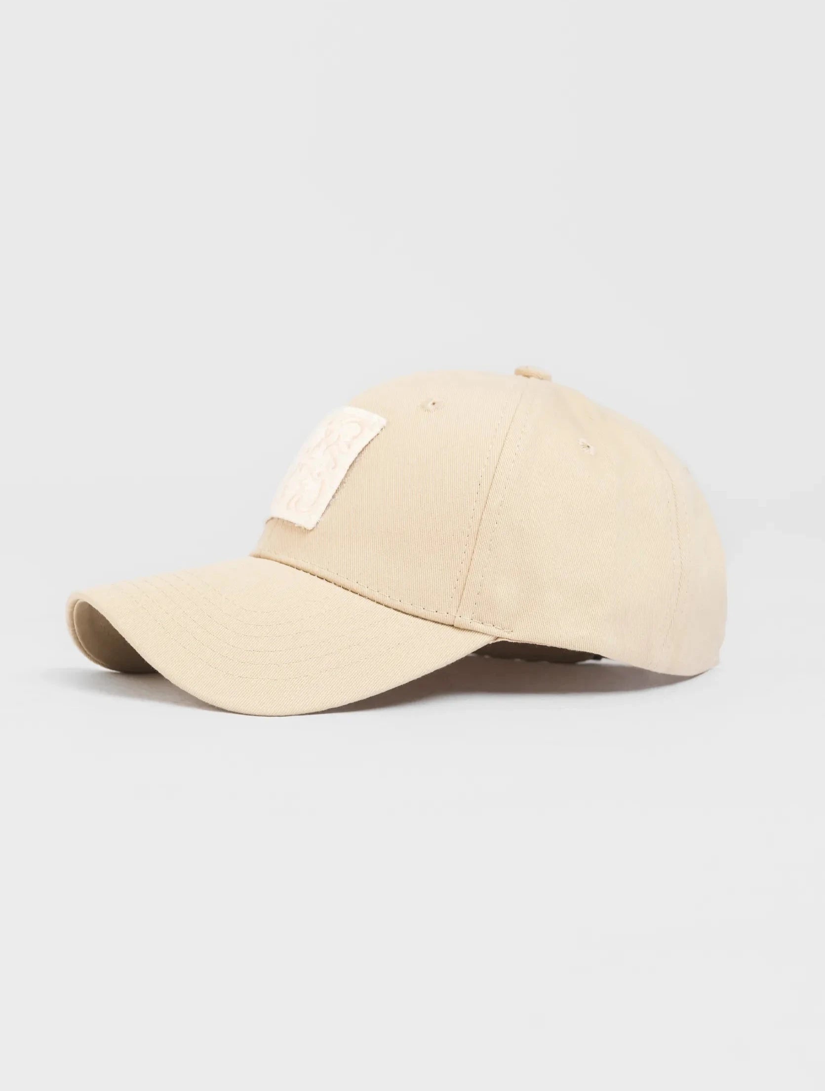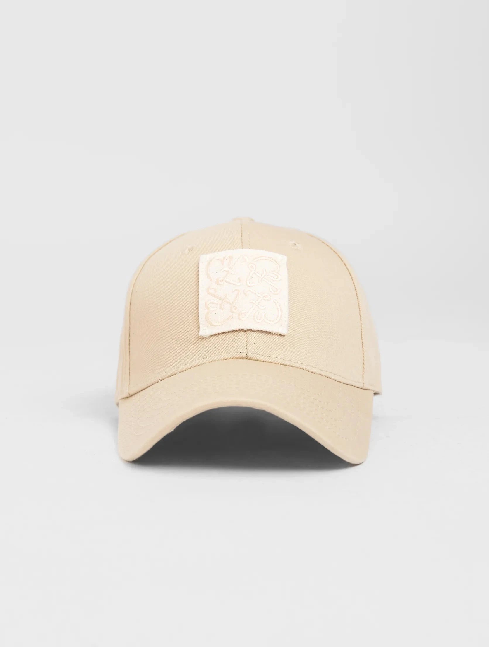 Logo Cap in Beige is made from premium canvas cotton for lasting comfort and style. It features an embroidered patch logo and neat hand-stitched details. A top-stitched visor adds structure, while the metal buckle at the back allows for an adjustable fit.