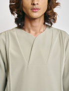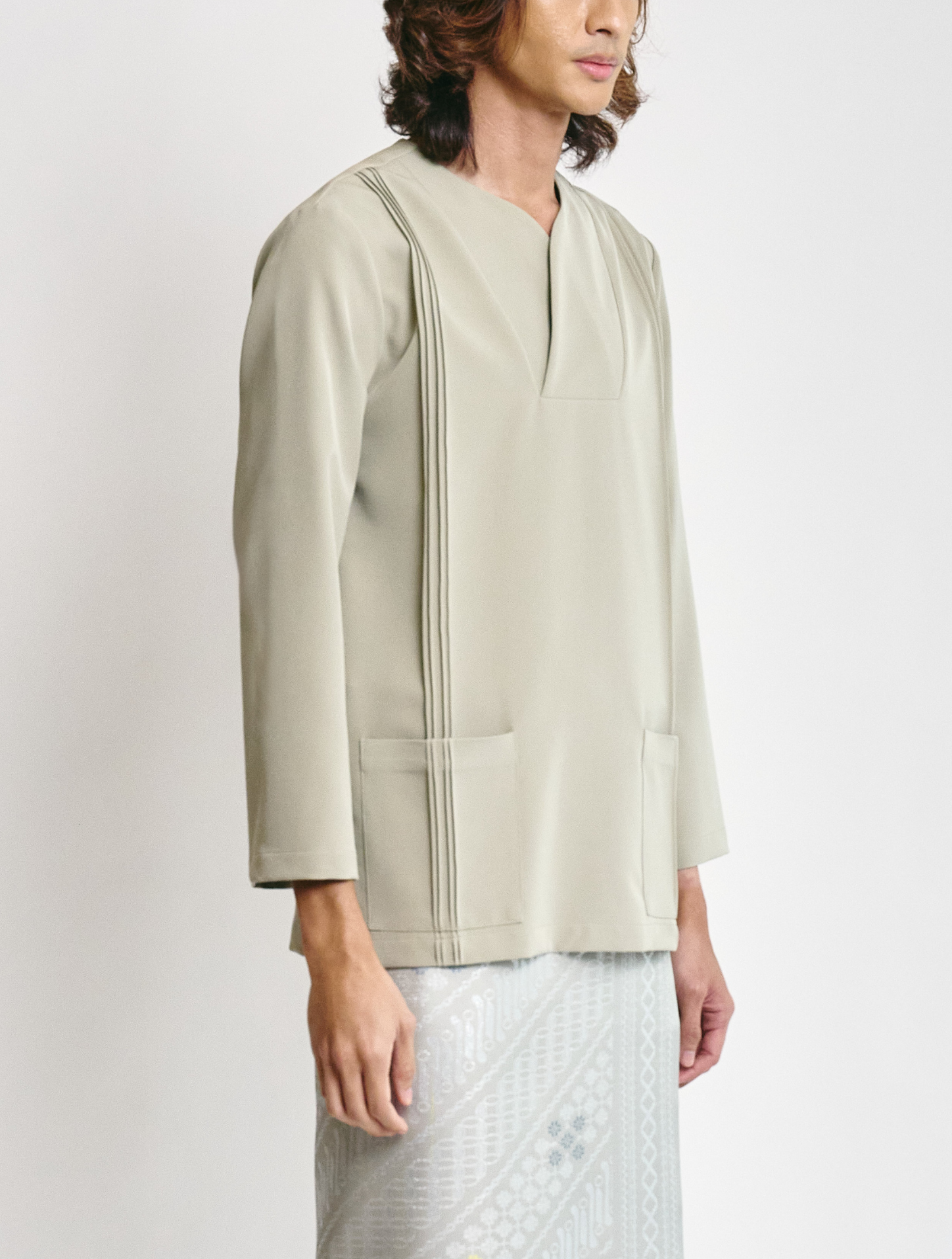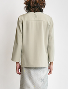 Esfahan, the iconic FIZIWOO designed overlapped-collar. Made with long sleeves for a clean, contemporary look. Features two functional patch pockets detailed with pintuck accents and side slits, finished with subtle logo embroidery at the back yoke. Cut in a regular fit and unlined for a lightweight, breathable wear.