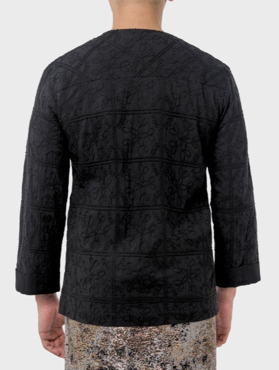 Ezfahan in Black is crafted from premium fabric and lined with smooth silk satin, offering a luxurious feel and refined finish. Featuring its signature curved overlap collar, this timeless piece blends modern tailoring with effortless elegance.