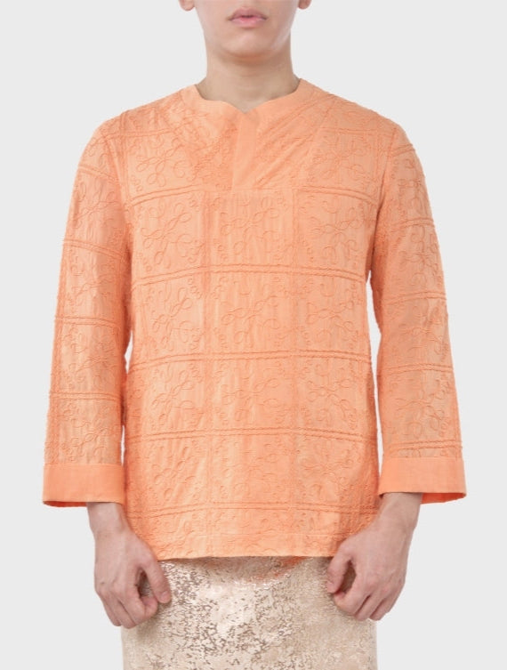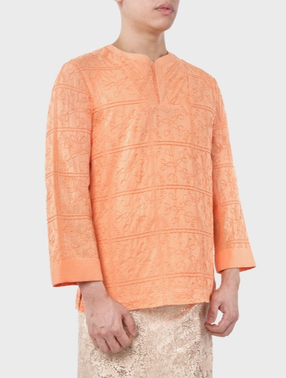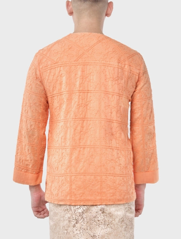 Ezfahan in Coral Orange is crafted from premium fabric and lined with smooth silk satin, offering a luxurious feel and refined finish. Featuring its signature curved overlap collar, this timeless piece blends modern tailoring with effortless elegance.