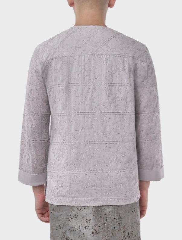 Ezfahan in Silver Grey is crafted from premium fabric and lined with smooth silk satin, offering a luxurious feel and refined finish. Featuring its signature curved overlap collar, this timeless piece blends modern tailoring with effortless elegance.