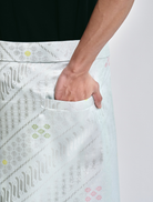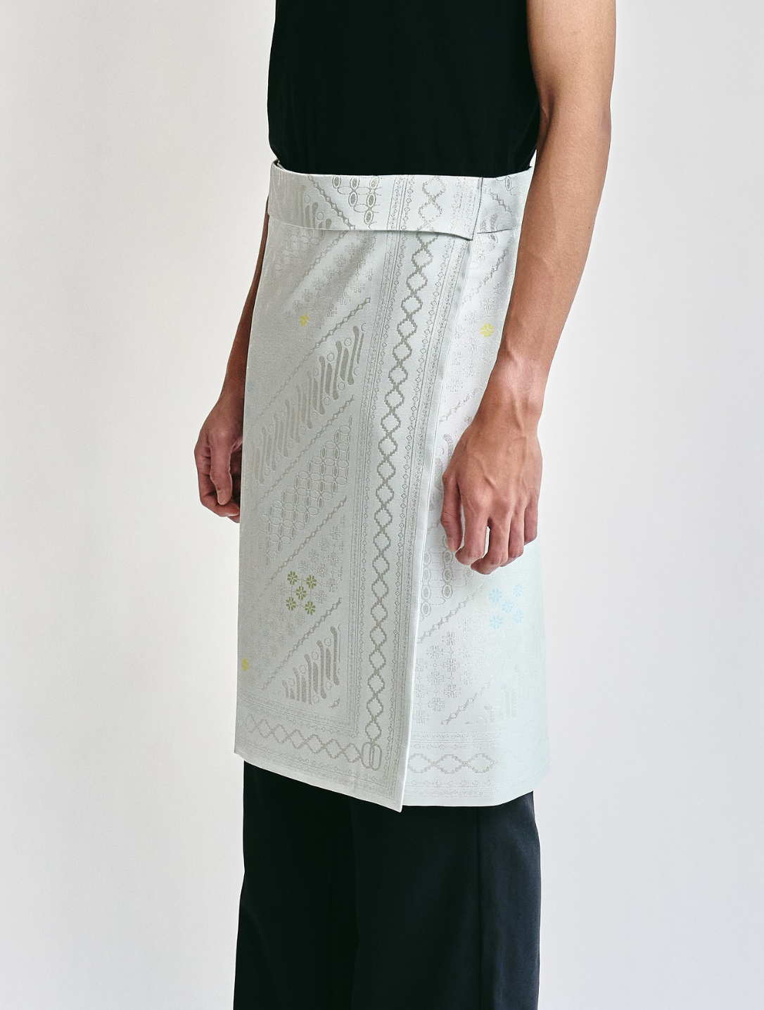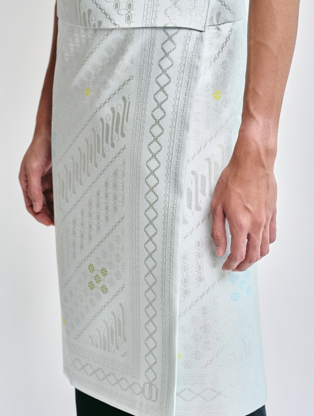 Fattah is a contemporary sampin crafted in gold and silver thread woven jacquard for a refined, structured finish. Designed as a wrapped instant sampin with adjustable velcro fastening, allowing ease of wear without compromising form. Thoughtfully detailed with a hidden mini front pocket and a concealed back pocket for subtle functionality.