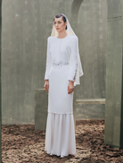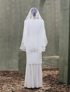 The Helena Soft Net Veil is made from delicate ivory netting, beautifully finished with scalloped embroidery. Measuring 56.5 inches inlength and 66 inches in width, it drapes effortlessly with a light, graceful flow. This piece offers a refined accent, perfect for completing asophisticated look.