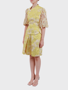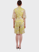 Huang Ya in Yellow artfully blends Chinese cultural heritage with contemporary vision, reinterpreting the essence of traditional cheongsams and samfu through refined modern silhouettes and haute couture techniques. The collection's precise tailoring and distinctive asymmetrical elements evoke the serpent's elegant movement—a timeless symbol of metamorphosis and grace. This distinguished Lunar creation exemplifies the balance between tradition and innovation through impeccable craftsmanship. The ensemble features an exquisite jacquard top with an asymmetrical neckline, traditional frog closures, and comprehensive beading throughout its sleeveless design, complemented by sophisticated pleated culottes with a comfortable elastic waistband and functional side pockets. Both pieces are enhanced with luxurious silky satin lining and concealed fastenings, all rendered in a luminous yellow hue.