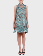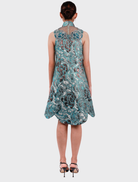 Exquisitely crafted with precision tailoring and distinctive asymmetrical elements, this Sapphire Blue masterpiece captures the Snake's essence of elegance and renewal. The sophisticated Jacquard Mandarin collar crowns this corsetted, fully beaded sleeveless creation. Its A-line midi silhouette, luxuriously lined with silky satin, features a discreet back zip closure, embodying refined sophistication in a stunning azure hue.