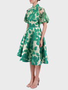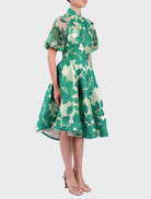 The Lu Meng in Forest Green exemplifies artisanal craftsmanship through its precise tailoring and dynamic asymmetrical lines, evoking the sinuous elegance and transformative symbolism of the Snake. Distinguished by a Jacquard Mandarin collar with an angular slit and traditional frog fastening, this midi dress features opulent beaded raglan sleeves and an avant-garde asymmetrical hemline. The interior reveals luxurious satin silk lining with structured shoulder pads, while a concealed back zipper ensures a flawless silhouette in rich Forest Green.