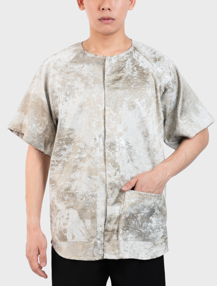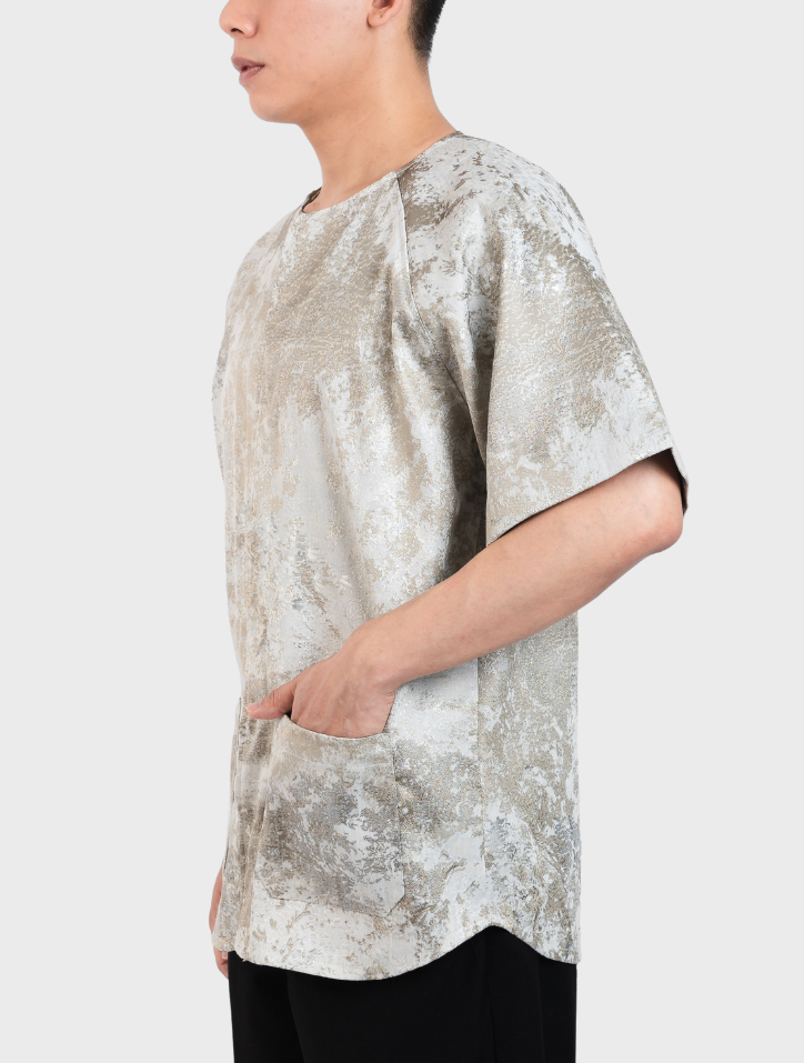 Lyon Short in White Beige is crafted from delicate jacquard fabric with a subtle textured design. It features a discreet front button and patch pockets for a refined yet relaxed look. This high-quality piece seamlessly blends formal and casual elements for effortless sophistication.