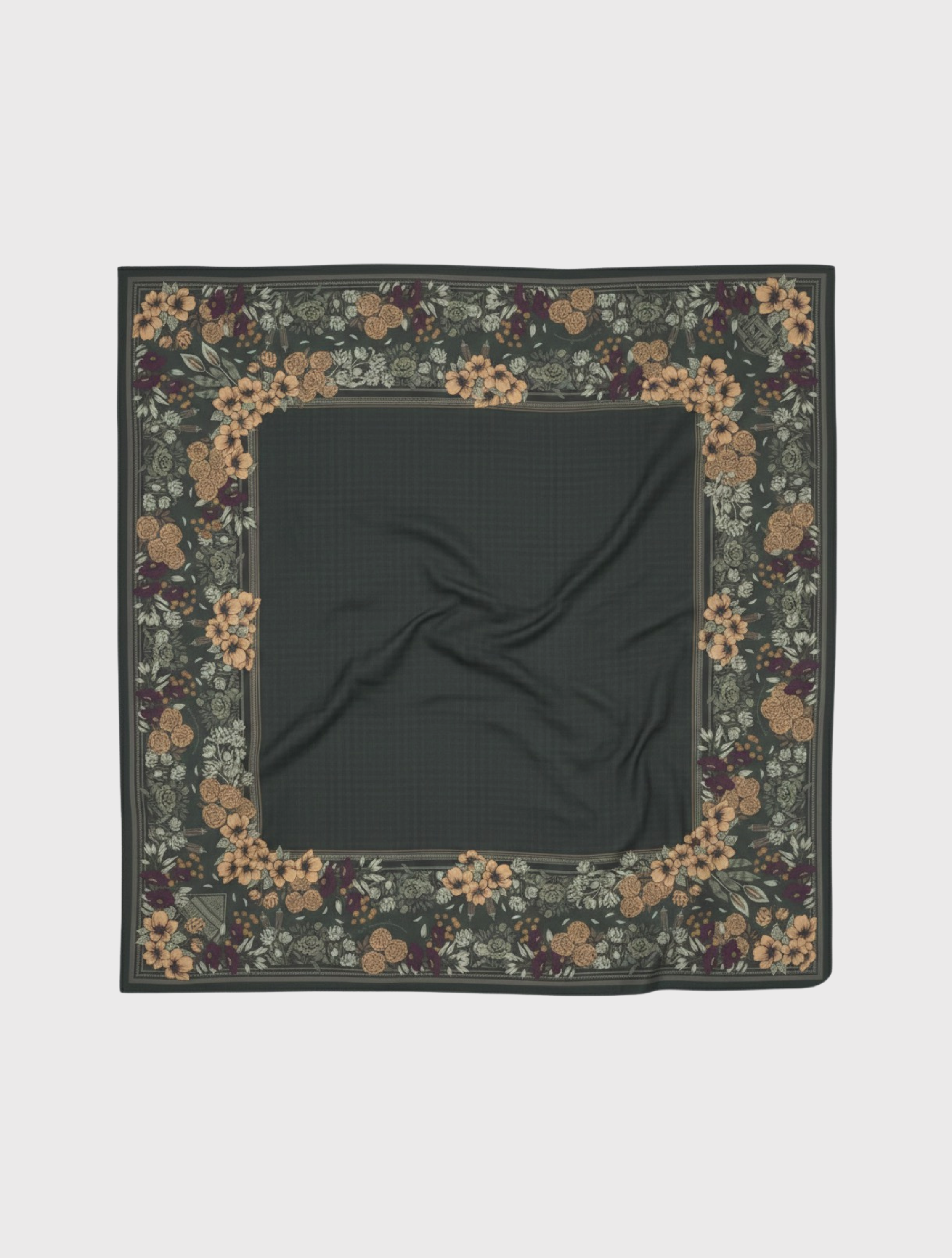 Melur scarf features a 45-inch square design with an elegant square floral motif composition inspired by nostalgic heritage. Finished with laser-cut edges for a seamless drape, it embodies sophistication and tradition. Each scarf comes beautifully packaged with a custom scarf pin and dust bag making it a timeless keepsake or a thoughtful gift.