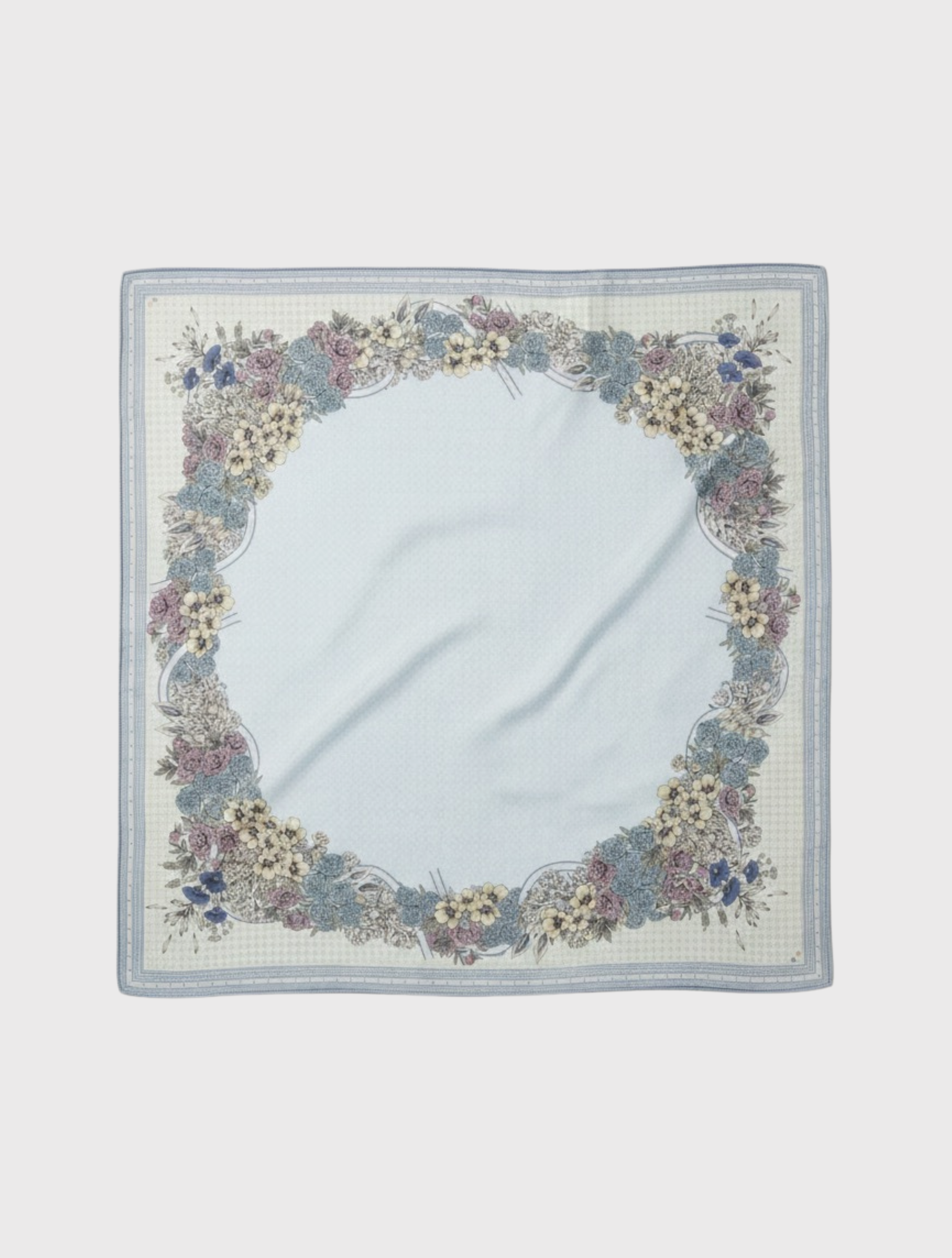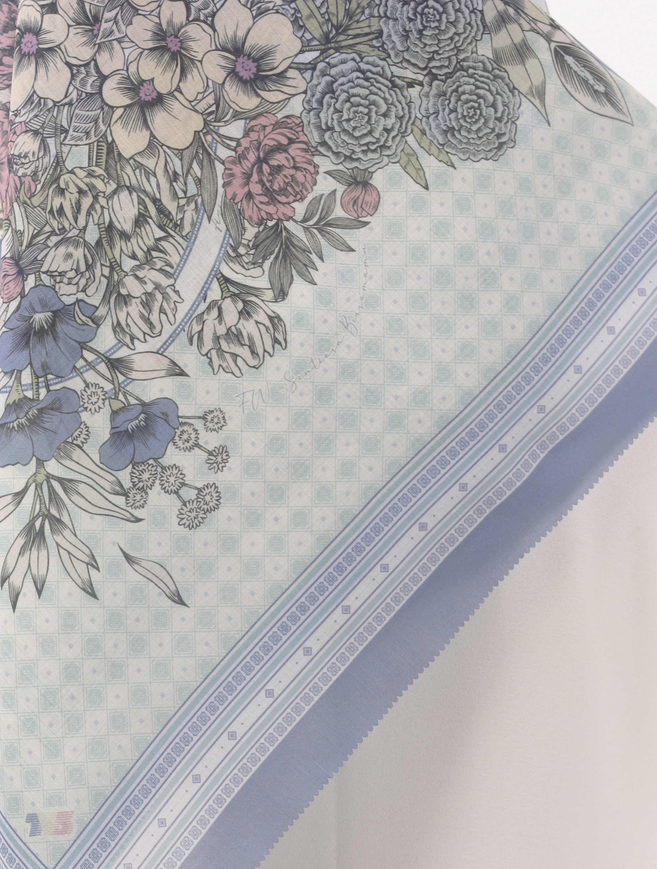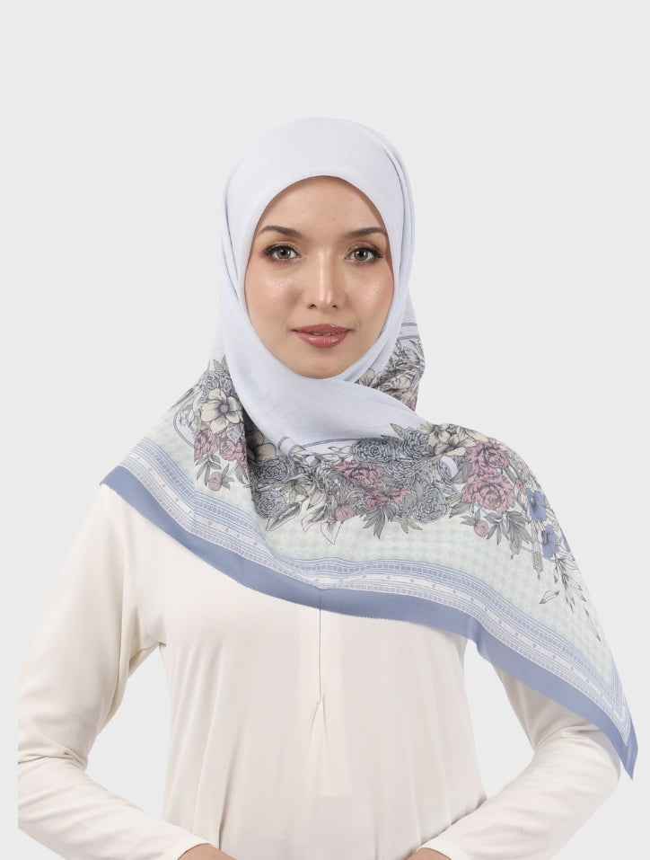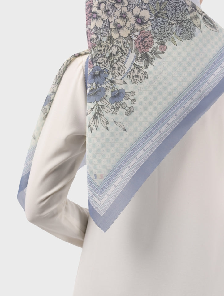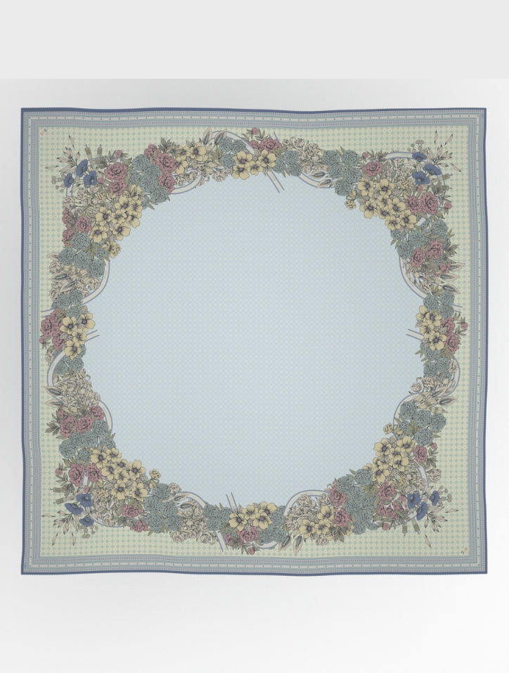 Mawar scarf features a 45-inch square design with an elegant circular floral motif composition inspired by nostalgic heritage. Finished with laser-cut edges for a seamless drape, it embodies sophistication and tradition. Each scarf comes beautifully packaged with a custom scarf pin and dust bag making it a timeless keepsake or a thoughtful gift.