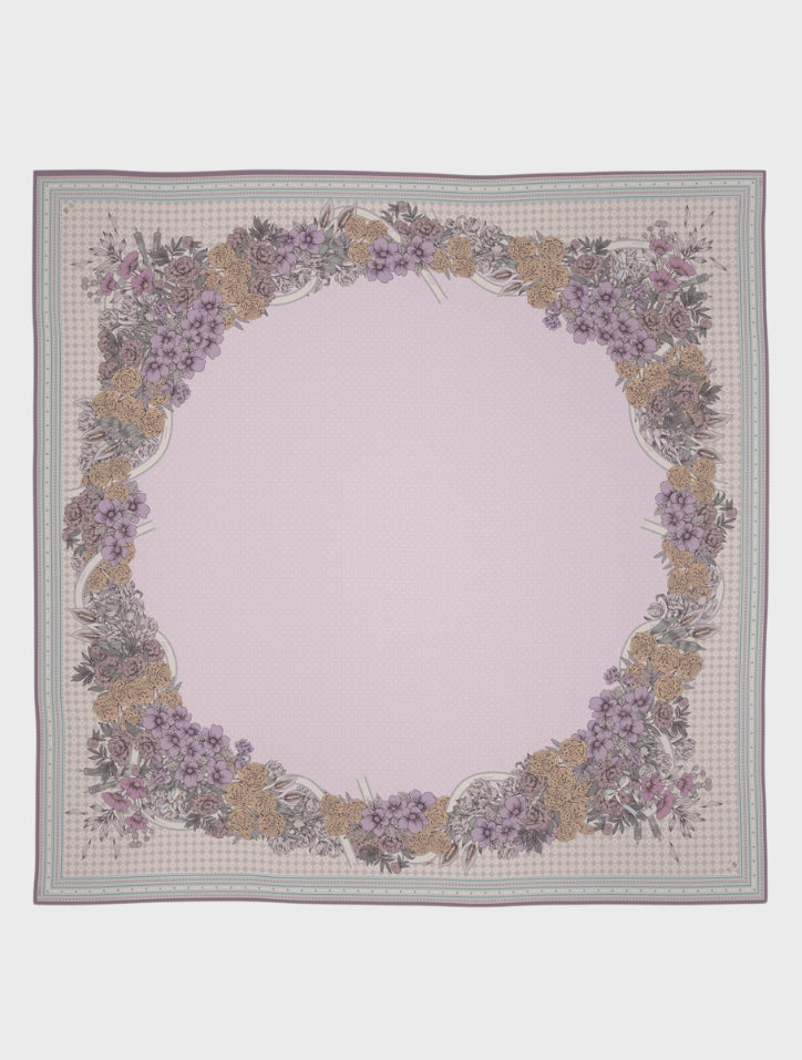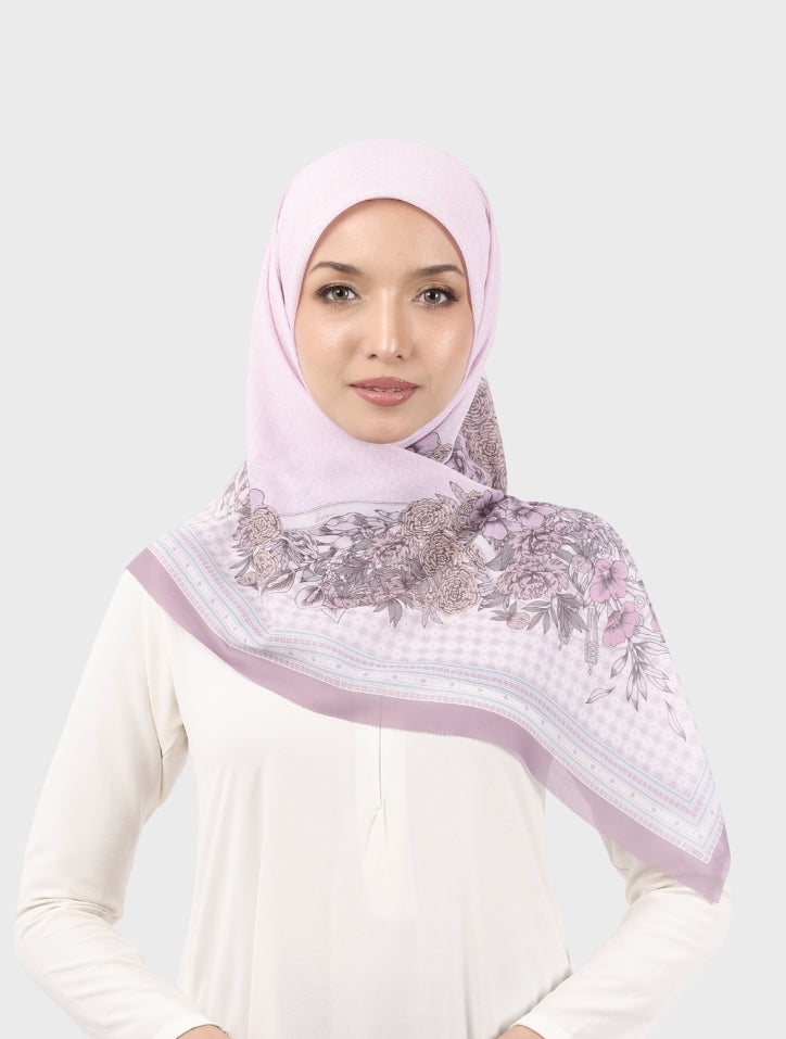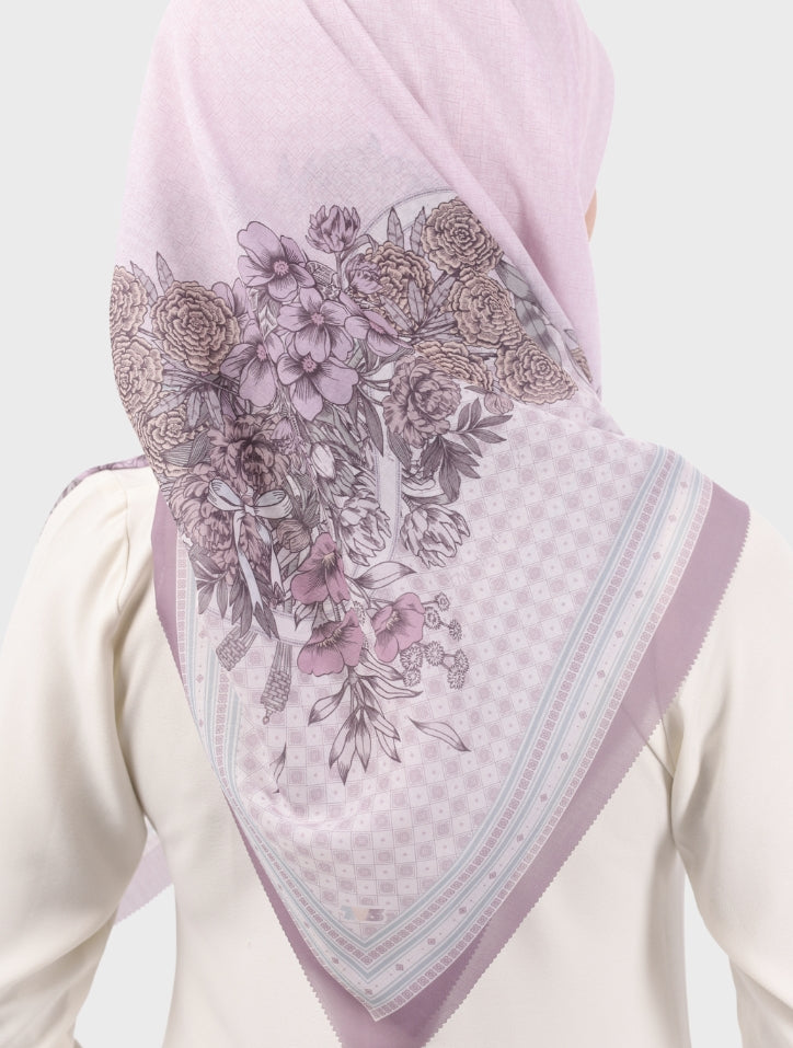 Mawar scarf features a 45-inch square design with an elegant circular floral motif composition inspired by nostalgic heritage. Finished with laser-cut edges for a seamless drape, it embodies sophistication and tradition. Each scarf comes beautifully packaged with a custom scarf pin and dust bag making it a timeless keepsake or a thoughtful gift.
