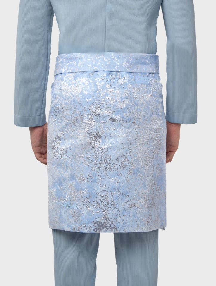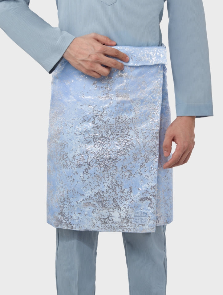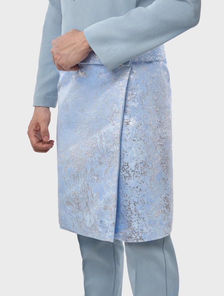Putra in Baby Blue is crafted from premium two-sided brocade fabric, offering versatility and a modern touch of elegance. The material features an embroidered Fiziwoo monogram, combining refined texture with timeless sophistication. Fully reversible, it allows for effortless styling and adaptability.