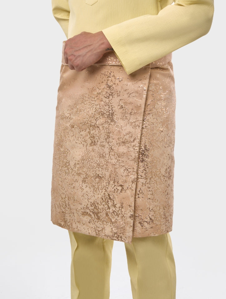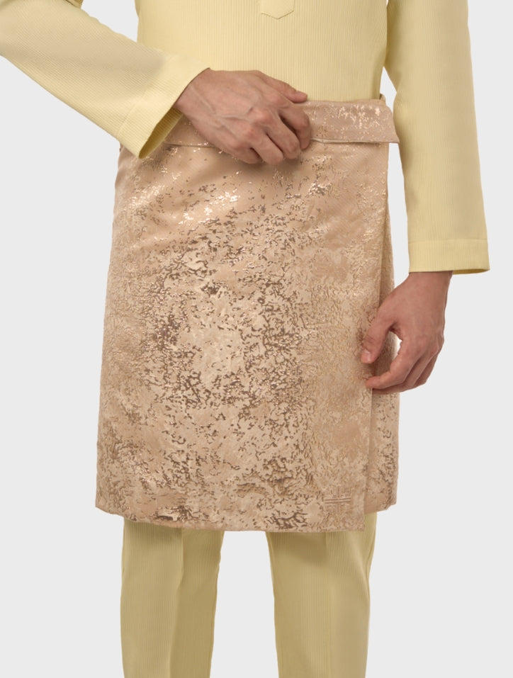 Putra in Champagne is crafted from luxurious two-sided brocade fabric, blending modern style with traditional elegance. The material is fully reversible and features an embroidered Fiziwoo monogram, offering a refined and versatile finish.