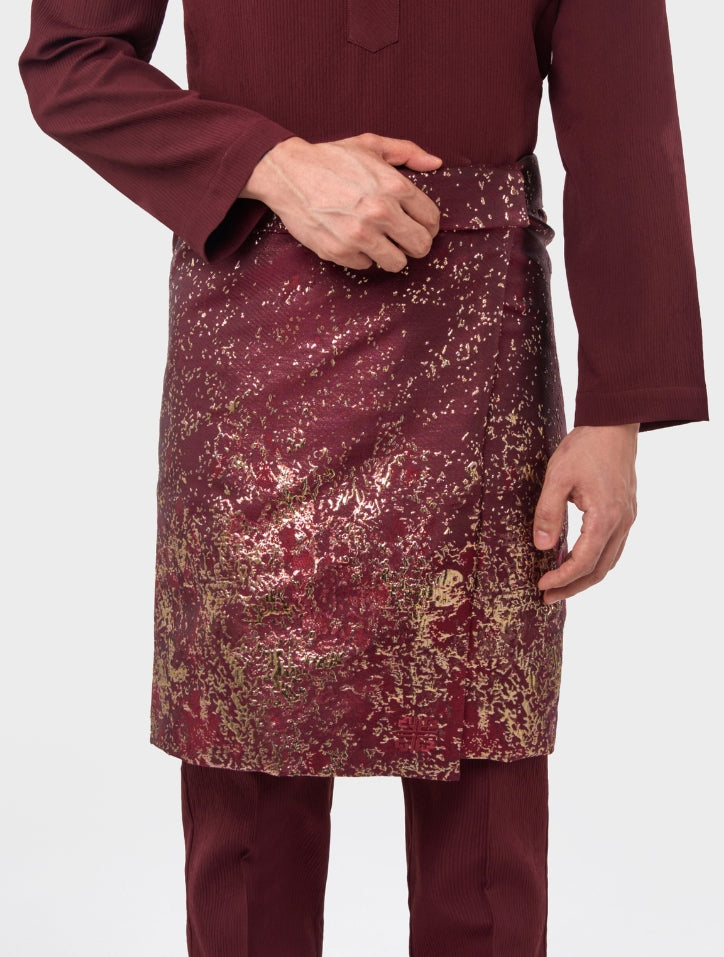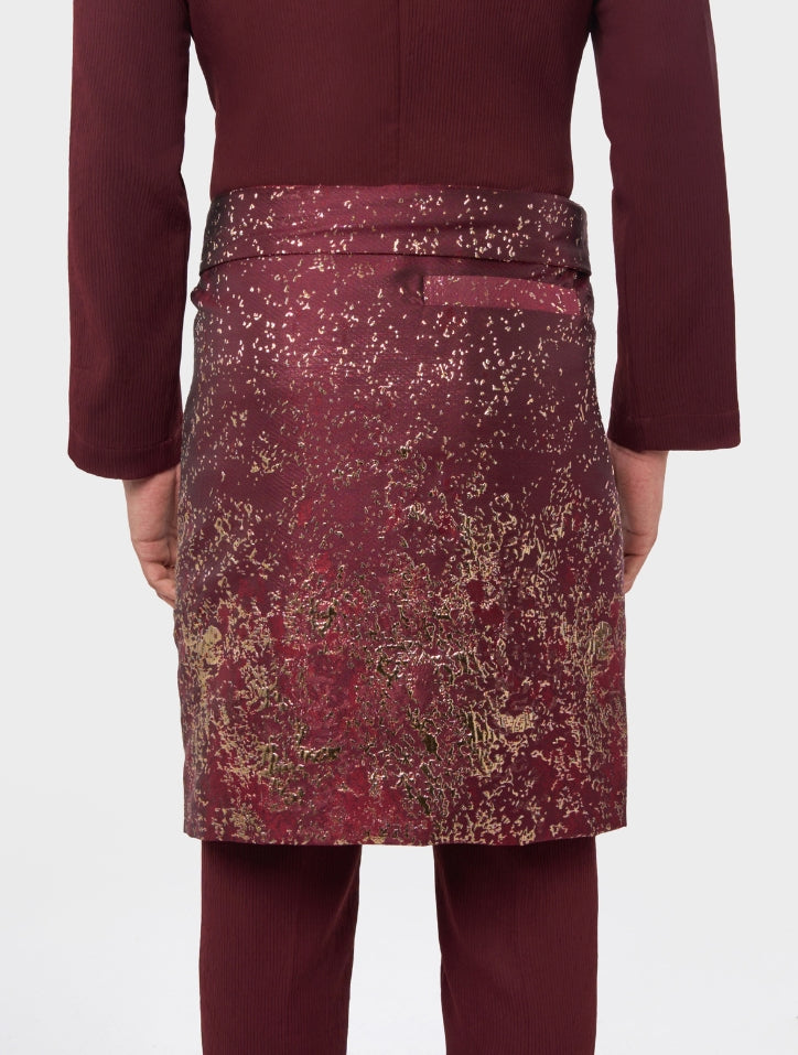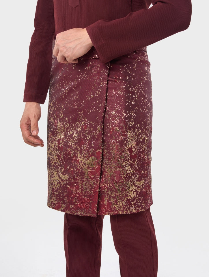 Putra in Maroon is crafted from premium two-sided brocade fabric, offering a refined and modern take on traditional elegance. The material is fully reversible and detailed with an embroidered Fiziwoo monogram, creating a polished and versatile finish.