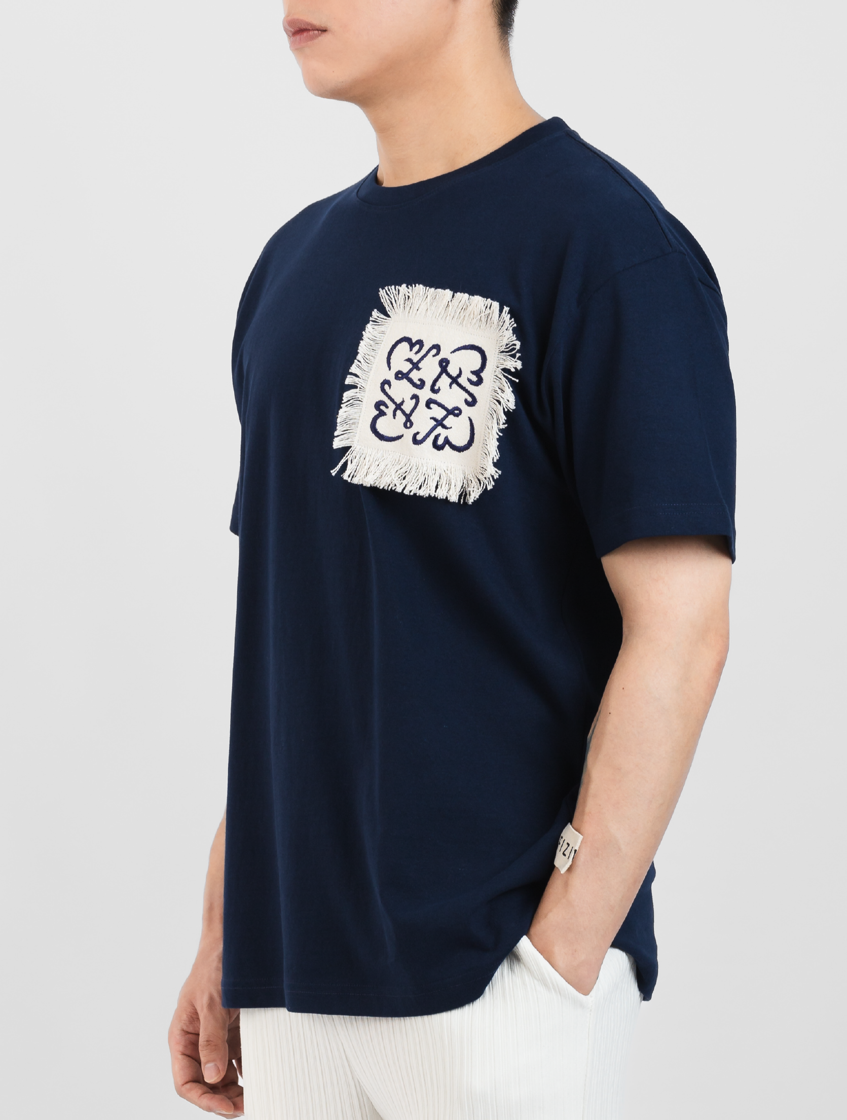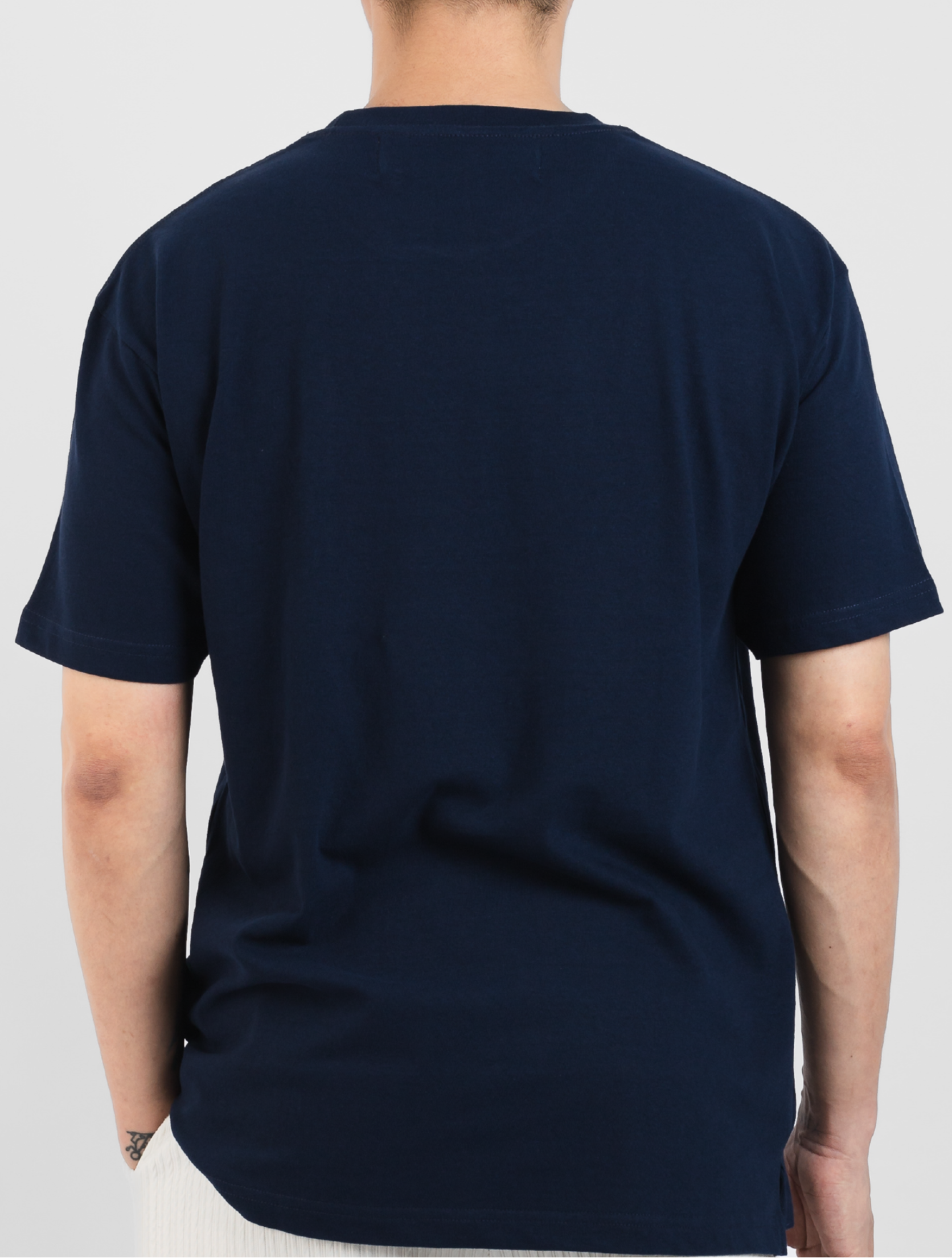 Mavi T-shirt in Navy Blue is made from premium cotton for a soft and comfortable feel. It features a ribbed crew neck that gives it a clean, structured finish. An embroidered canvas patch logo on the chest adds a subtle, refined detail.