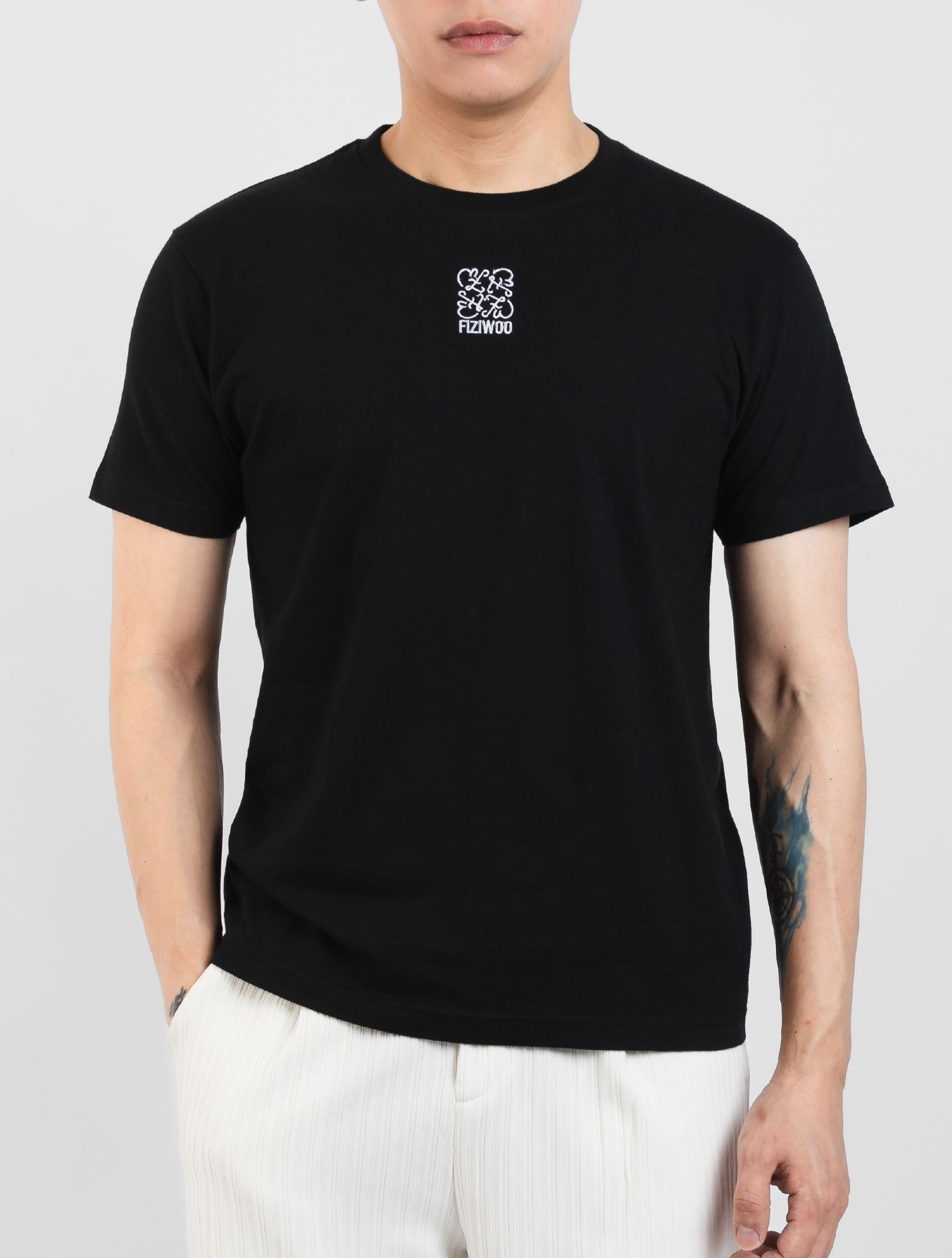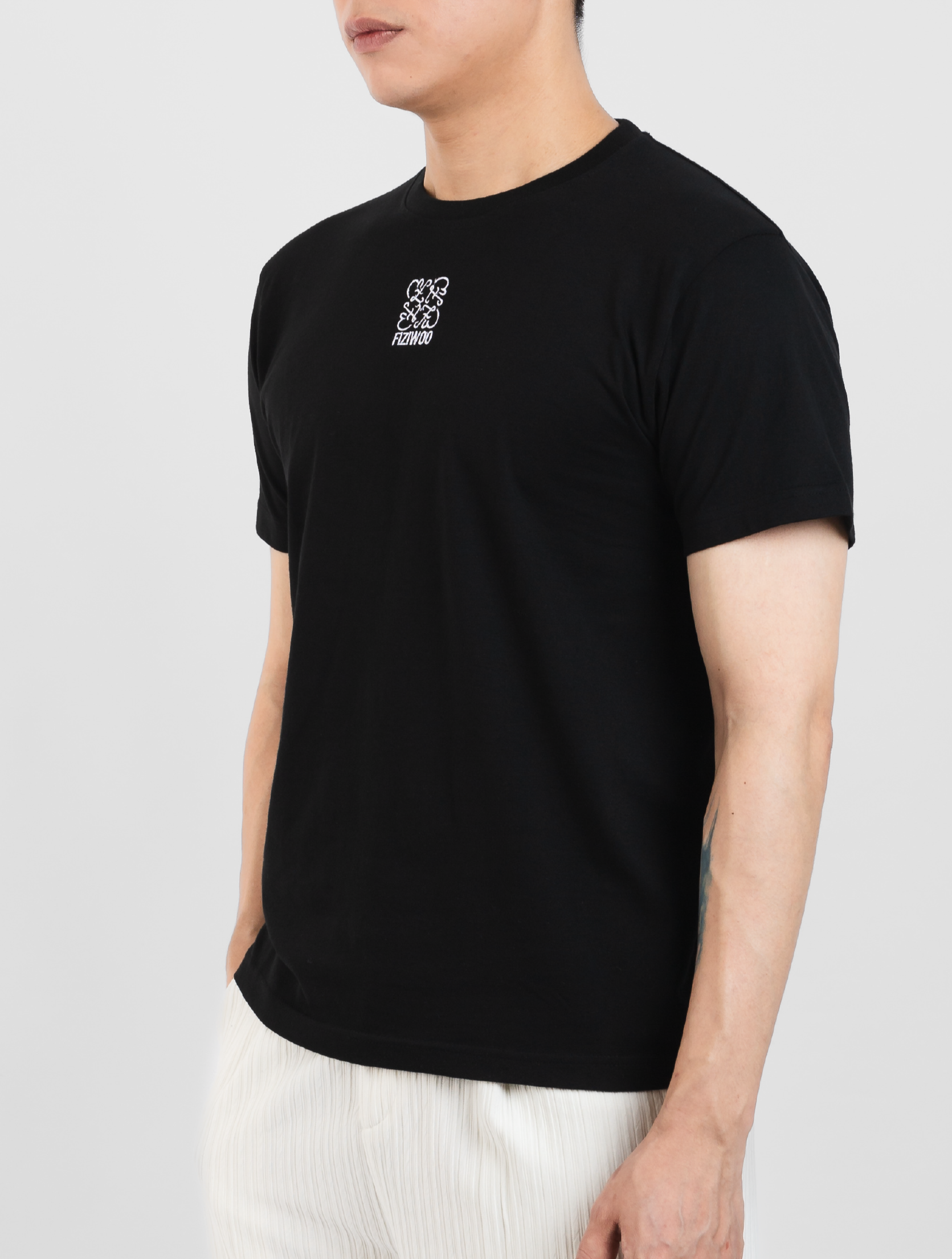 Noa T-Shirt in Black presents a relaxed silhouette crafted from quality cotton fabric. Featuring a meticulously ribbed crew neck and an artfully embroidered centerpiece logo, this refined garment exemplifies understated luxury. Displayed on our model in size M, it offers both sophisticated styling and exceptional comfort.