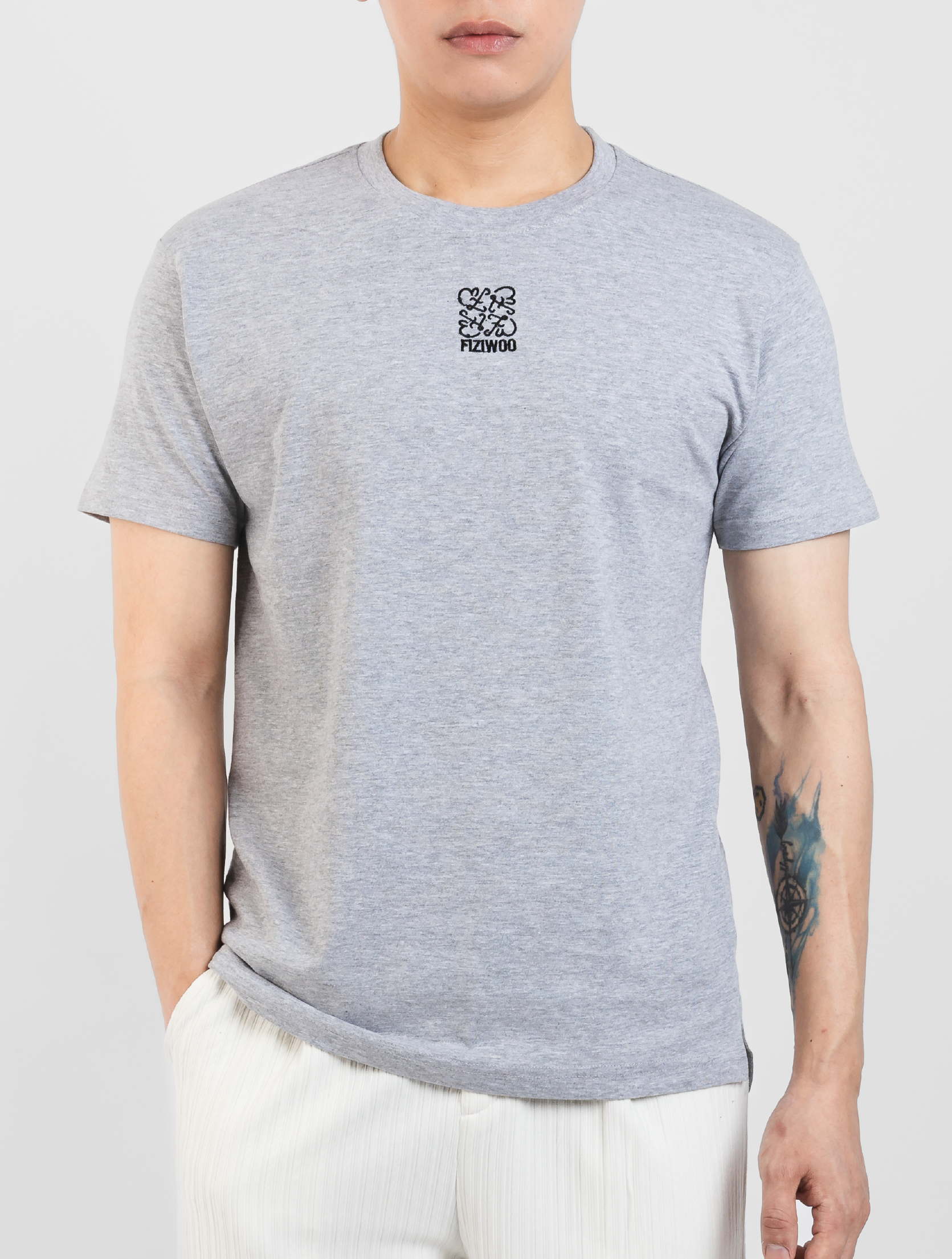 Noa T-Shirt in Grey exemplifies understated elegance with its graceful relaxed silhouette. Distinguished by a refined ribbed crew neck and tastefully embroidered center chest logo, this premium cotton garment delivers a sophisticated aesthetic while ensuring exceptional comfort.