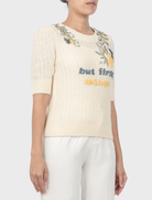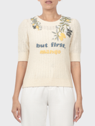 Crafted from soft cotton crochet knit, this top offers a lightweight, breathable texture with gentle stretch and natural comfort. The open-knit construction enhances airflow while maintaining structure, making it ideal for warm-weather wear. Its delicate surface provides the perfect base for showcasing intricate handcrafted embellishments.