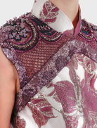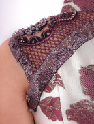 Exquisite craftsmanship meets contemporary design in this Aubergine Purple ensemble. The collection showcases intricate handwork, opulent silk brocades, artisanal jacquards, and gleaming metallic elements that honor tradition while embracing modern aesthetics. The precise tailoring and distinctive asymmetrical elements reflect the Snake's elegant symbolism of transformation. The sleeveless jacquard top features a Mandarin collar, full beading, and a fitted silhouette with satin lining and concealed back closure. Complementing this is an asymmetrical knee-length skirt with comfortable elastic waistband, convenient side pockets, and luxurious satin lining, all in a rich Aubergine Purple hue.